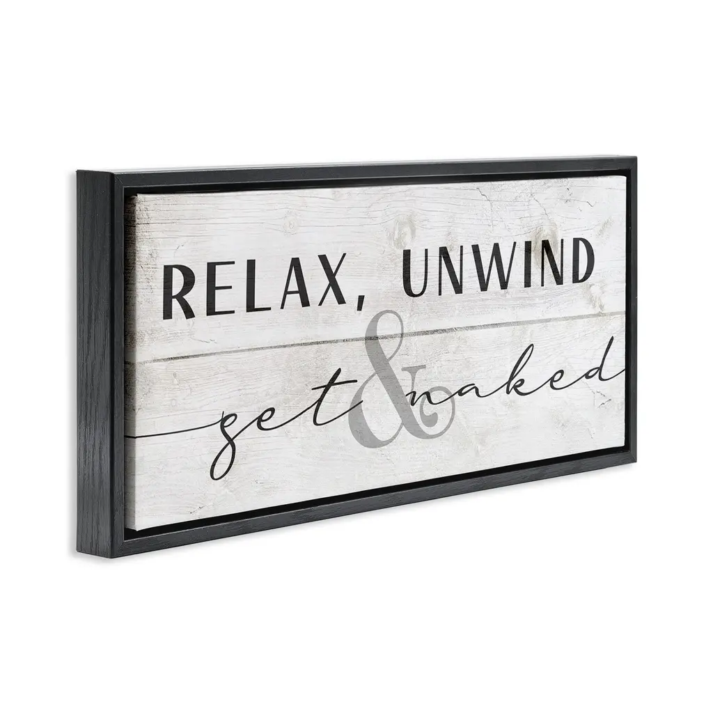 Stupell Relax Unwind & Get Naked Framed Floater Canvas Wall Art Design By Daphne Polselli - 25 X 11 - Black