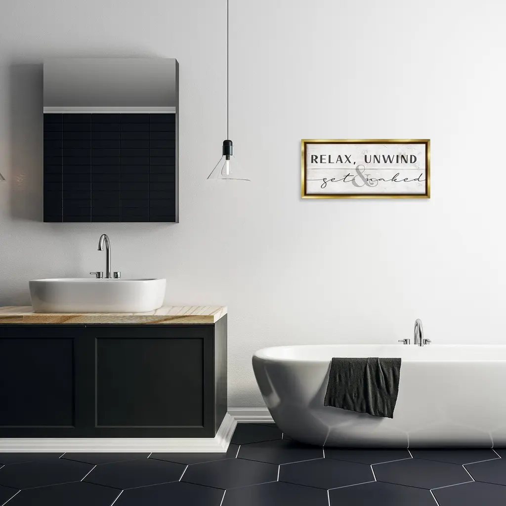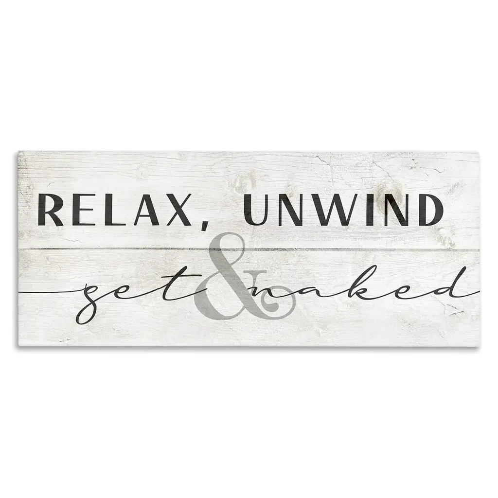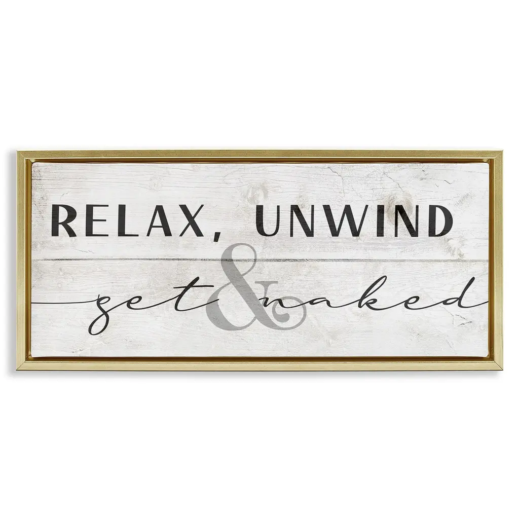 Stupell Relax Unwind & Get Naked Framed Floater Canvas Wall Art Design By Daphne Polselli - 25 X 11 - Gold