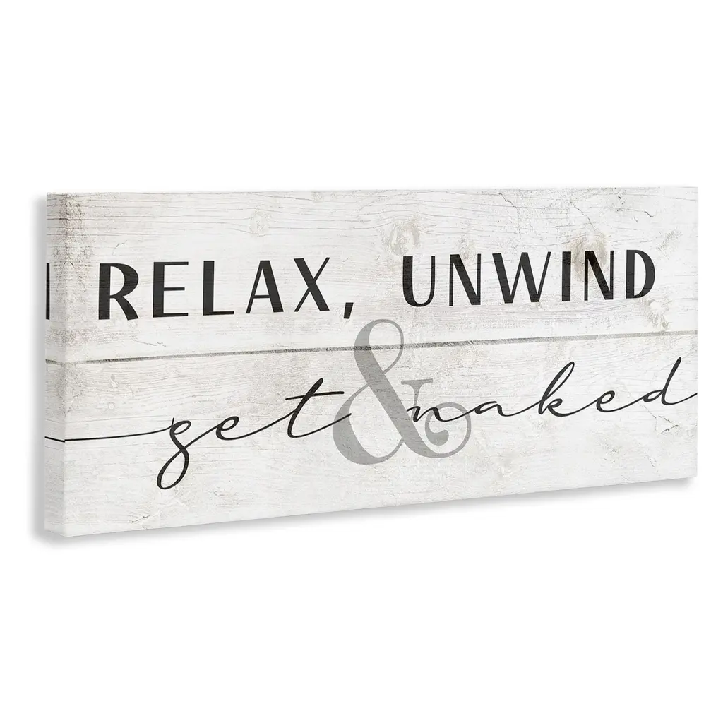 Stupell Relax Unwind And Get Naked Phrase Charming Distress Canvas Wall Art - 13 X 30