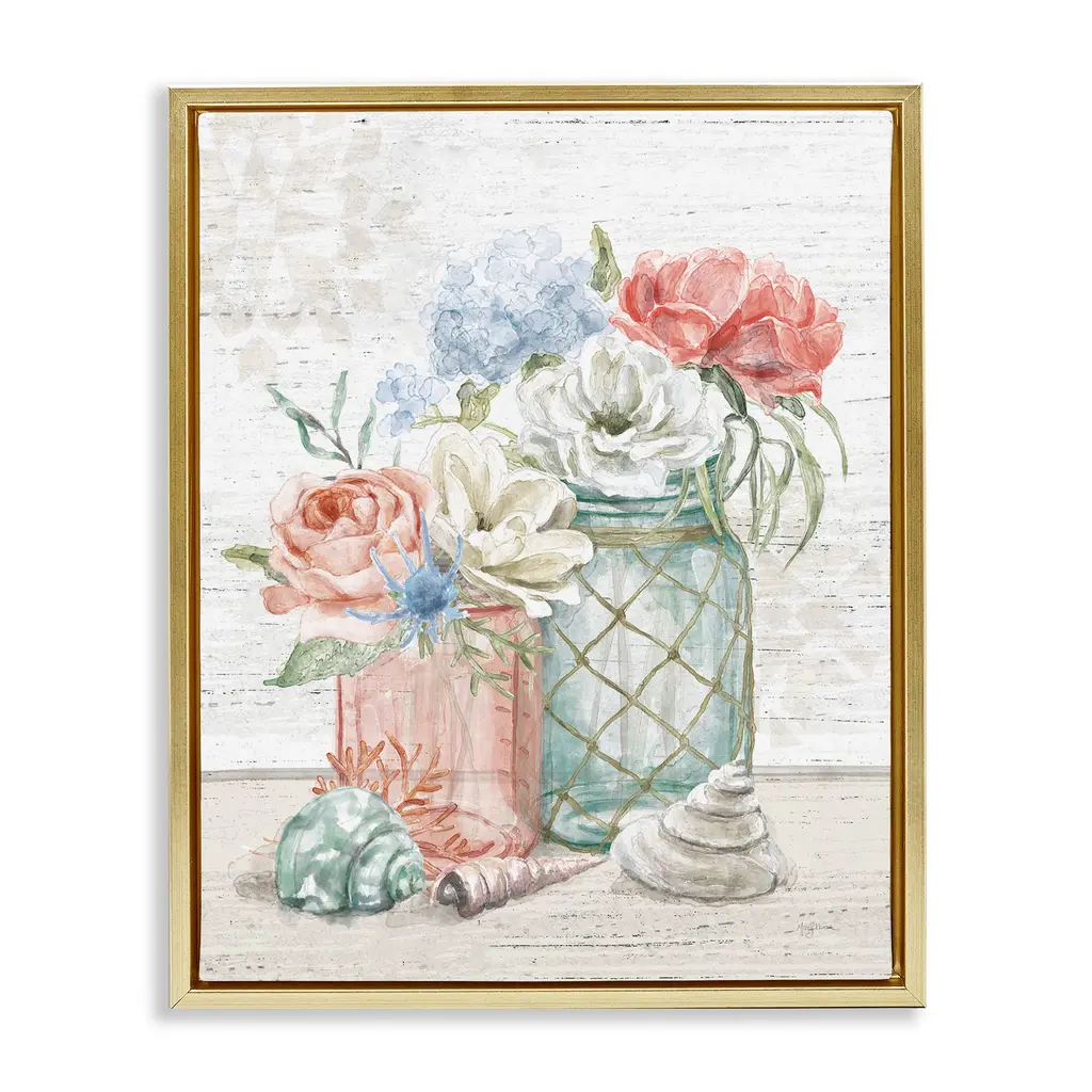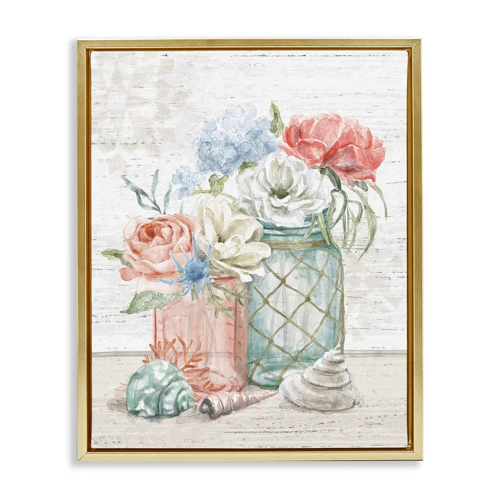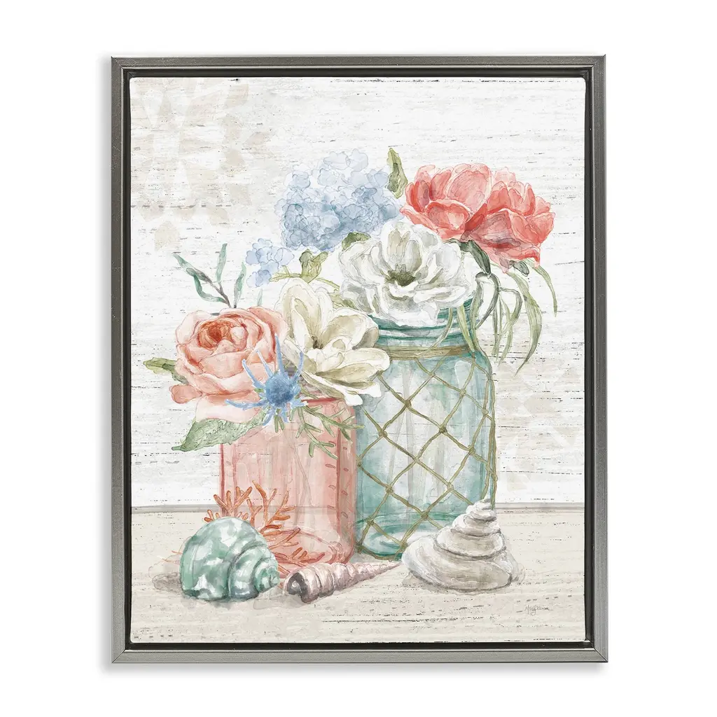 Elevate your home or office to the next level with Stupell Framed Floating Canvas Wall Art. Our premium hand-stretched canvas is mounted securely into a sturdy lightweight frame. The museum-style gap between the wrapped canvas and the box frame gives the illusion of floating artwork. Stupell Wall Art is made in the USA.Features: Dimensions: 17 x 1.7 x 21 Frame, 16 x 1.5 x 20 Canvas ArtFloating Frame Canvas Products are available in sizes 17"x21" and 25"x31". All Floating Frame Canvas Products have a 1.7" Depth.Wall Art is Ready to Hang with Hardware Free Hanging. No Installation required. For Easy Set Up Lean or Layer Artwork on Shelf or Against Wall. Artwork is Permently Fixed into the Frame.Our elevated 1.7" Thick Floating Frame is the perfect complement to our canvas style Wall Art. We use only the highest quality inks in house with industry leading printing solutions. Canvas is hand stretched over a durable wood foundation and then mounted securly into a Modern Box Frame. Made in the USA.Artwork Relates To: Nautical, Flower, Floral, Bouquet, Seashell, Starfish, BeachDesign by Mary Urban