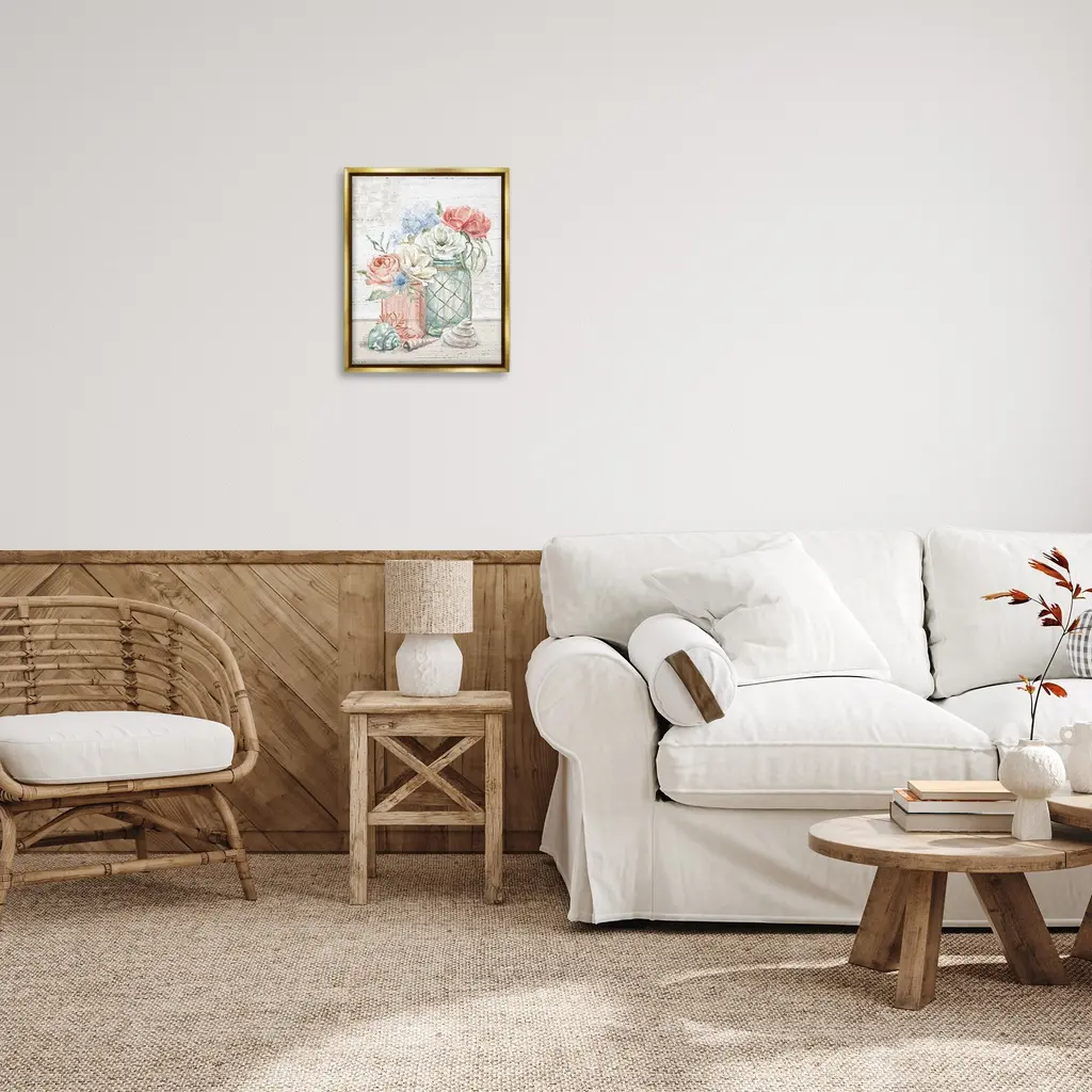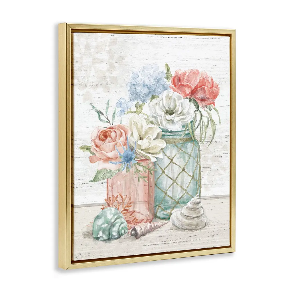 Elevate your home or office to the next level with Stupell Framed Floating Canvas Wall Art. Our premium hand-stretched canvas is mounted securely into a sturdy lightweight frame. The museum-style gap between the wrapped canvas and the box frame gives the illusion of floating artwork. Stupell Wall Art is made in the USA.Features: Dimensions: 17 x 1.7 x 21 Frame, 16 x 1.5 x 20 Canvas ArtFloating Frame Canvas Products are available in sizes 17"x21" and 25"x31". All Floating Frame Canvas Products have a 1.7" Depth.Wall Art is Ready to Hang with Hardware Free Hanging. No Installation required. For Easy Set Up Lean or Layer Artwork on Shelf or Against Wall. Artwork is Permently Fixed into the Frame.Our elevated 1.7" Thick Floating Frame is the perfect complement to our canvas style Wall Art. We use only the highest quality inks in house with industry leading printing solutions. Canvas is hand stretched over a durable wood foundation and then mounted securly into a Modern Box Frame. Made in the USA.Artwork Relates To: Nautical, Flower, Floral, Bouquet, Seashell, Starfish, BeachDesign by Mary Urban