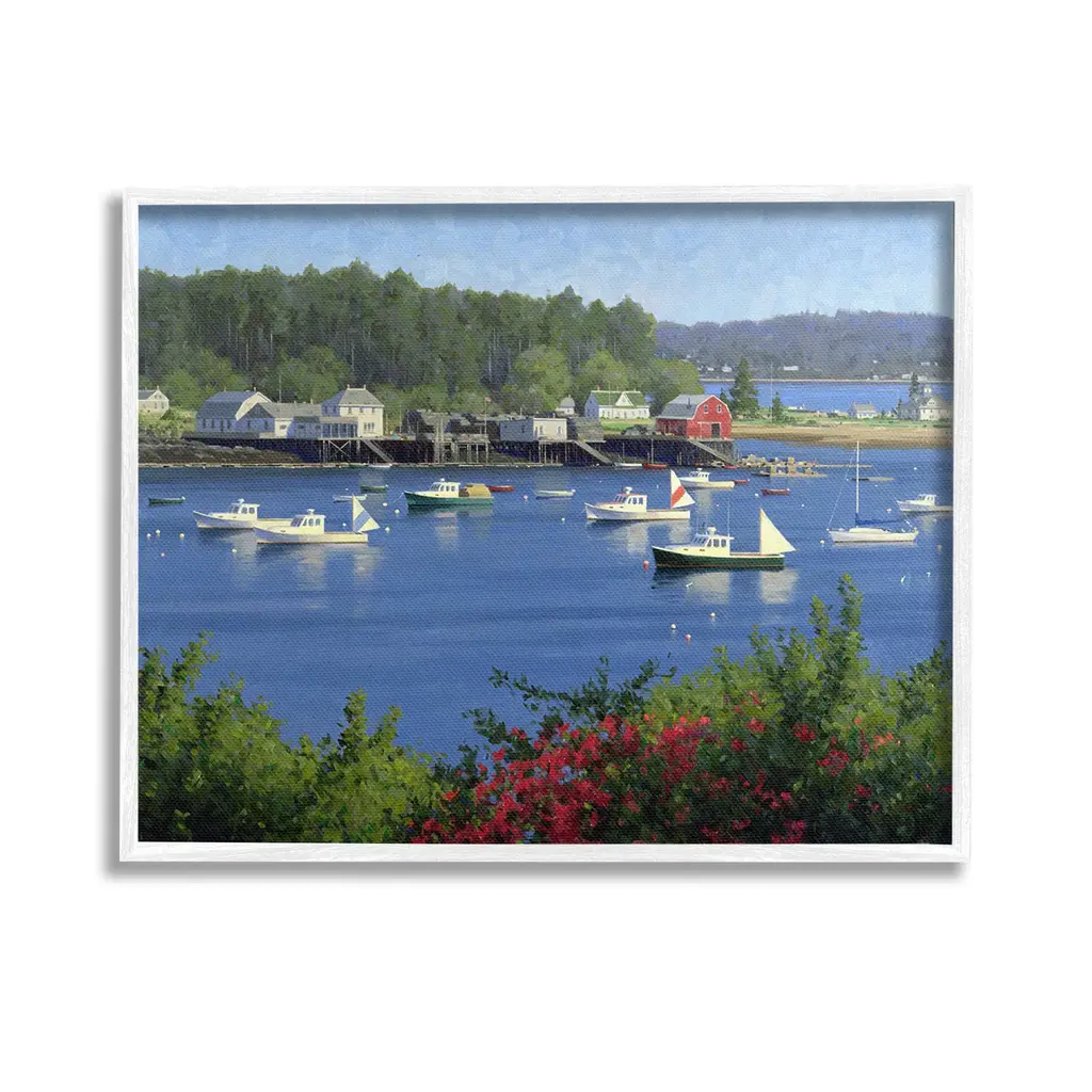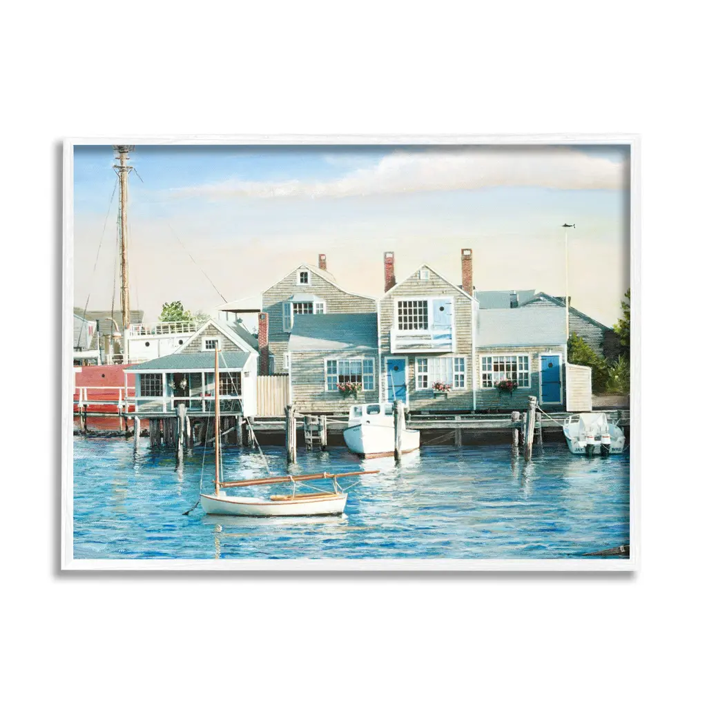 It is time to set up your room with of our fresh new 'Framed Giclee Textured Wall Art' pieces. You may have seen our Wooden or Canvas products, but our framed products are now available in three alluring styles: black, gray farmhouse and white. Our textured artwork will add more depth and dimension to any space. Each piece is mounted with a 1.5 inch thick wood grain frame that is ready to hang! Looking for a statement piece? We have oversized artwork available.Features: Wall Art is Ready to Hang - No Installation or Hardware Needed. For Easy Set Up Lean or Layer Artwork on Shelf or Against Wall.Our giclee prints are carefully mounted on a durable MDF backing, and then perfectly finished in a 1.5 inch thick woodgrain frame. Frame colors include black, gray farmhouse and white. Made In USA.Artwork Relates To: Water; Waterfront; Boat; Vehicle; Transportation; Pier; Port; Dock; Harbor; Marina; Watercraft; Vessel; Housing; Building; Outdoors; Nature; House; Design by Tom Mielko