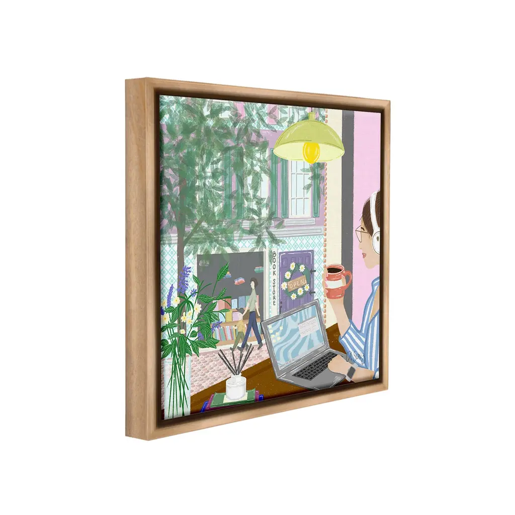 Elevate your home or office to the next level with Stupell Framed Floating Canvas Wall Art. Our premium hand-stretched canvas is mounted securely into a sturdy lightweight frame. The museum-style gap between the wrapped canvas and the box frame gives the illusion of floating artwork. Stupell Wall Art is made in the USA.Features: Dimensions: 18 x 1.7 x 18 Frame, 17 x 1.5 x 17 Canvas ArtFloating Frame Canvas Products are available in sizes 18"x18" and 25"x25". All Floating Frame Canvas Products have a 1.7" Depth.Wall Art is Ready to Hang with Hardware Free Hanging. No Installation required. For Easy Set Up Lean or Layer Artwork on Shelf or Against Wall. Artwork is Permently Fixed into the Frame.Our elevated 1.7" Thick Floating Frame is the perfect complement to our canvas style Wall Art. We use only the highest quality inks in house with industry leading printing solutions. Canvas is hand stretched over a durable wood foundation and then mounted securly into a Modern Box Frame. Made in the USA.Artwork Relates To: Computer, Cup, Laptop, Female, Person, Woman, Mug, Coffee, Cafe, Headphones, City, Street, Town, Botanical, PlantDesign by Ale Saiz Studio