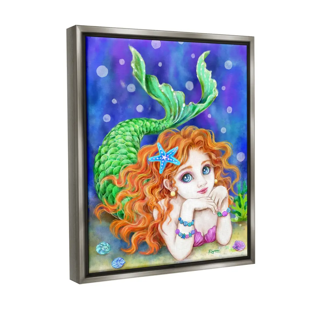 Elevate your home or office to the next level with Stupell Framed Floating Canvas Wall Art. Our premium hand-stretched canvas is mounted securely into a sturdy lightweight frame. The museum-style gap between the wrapped canvas and the box frame gives the illusion of floating artwork. Stupell Wall Art is made in the USA.Features: Dimensions: 17 x 1.7 x 21 Frame, 16 x 1.5 x 20 Canvas ArtFloating Frame Canvas Products are available in sizes 17"x21" and 25"x31". All Floating Frame Canvas Products have a 1.7" Depth.Wall Art is Ready to Hang with Hardware Free Hanging. No Installation required. For Easy Set Up Lean or Layer Artwork on Shelf or Against Wall. Artwork is Permently Fixed into the Frame.Our elevated 1.7" Thick Floating Frame is the perfect complement to our canvas style Wall Art. We use only the highest quality inks in house with industry leading printing solutions. Canvas is hand stretched over a durable wood foundation and then mounted securly into a Modern Box Frame. Made in the USA.Artwork Relates To: Person, Mermaid, Fantasy, Nautical, Underwater, Seashell, Starfish, Bubbles, Water, GirlDesign by Kayomi Harai