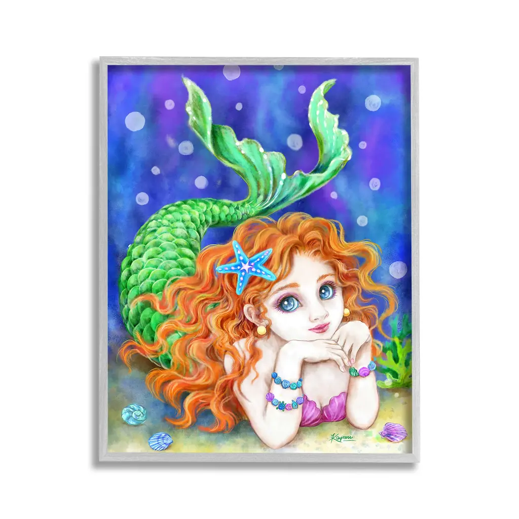 Add dimension to any room with our textured Framed Giclee Artwork. Our framed artwork is securely mounted into a 1.5-inch thick wood grain frame and ready to hang. Frames are available in three alluring styles: black, gray farmhouse and white. In addition, you should check out our oversized options if you want a statement piece. Stupell Wall Art is made in the USA.Features: Dimensions: 11 x 1.5 x 14 FramedFramed Giclee Products are available in the sizes 11"x14", 16"x20" or 24"x30". All Framed Giclee Products have a 1.5" Depth. Wall Art is Ready to Hang with Hardware Free Hanging. No installation required. For Easy Set Up Lean or Layer Artwork on Shelf or Against Wall.Our giclée prints are carefully mounted on a durable MDF backing, and then perfectly finished in a 1.5 inch thick woodgrain frame. Mounted frame colors include black, gray farmhouse and white. Made In USA.Artwork Relates To: Person, Mermaid, Fantasy, Nautical, Underwater, Seashell, Starfish, Bubbles, Water, GirlDesign by Kayomi Harai