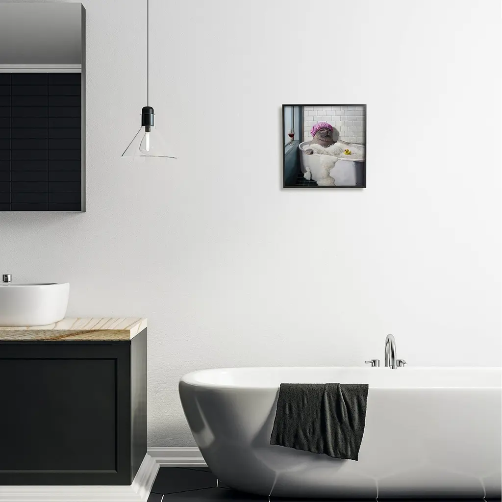 Our Framed Giclee Wall Art adds a touch of class to any space in your home or office. Frames are available in three alluring styles: black, gray farmhouse and white. Our textured artwork will add more depth and dimension to any space. Each piece is mounted with a 1.5 inch thick wood grain frame that is ready to hang! Looking for a statement piece? We have oversized artwork available.Features: Dimensions: 12 x 1.5 x 12 FramedFramed Giclee Sizes Include Standard: 12 x 1.5 x 12 Large: 17 x 1.5 x 17 Oversized: 24 x 1.5 x 24Wall Art is Ready to Hang - No Installation or Hardware Needed. For Easy Set Up Lean or Layer Artwork on Shelf or Against Wall.Our giclée prints are carefully mounted on a durable MDF backing, and then perfectly finished in a 1.5 inch thick woodgrain frame. Mounted frame colors include black, gray farmhouse and white. Made In USA.Artwork Relates To: Bathing, Bathtub, Tub, Cat, Mammal, Animal, Seal, Sea Lion, Rubber Duck, Wine Glass, BathroomDesign by Lucia Heffernan