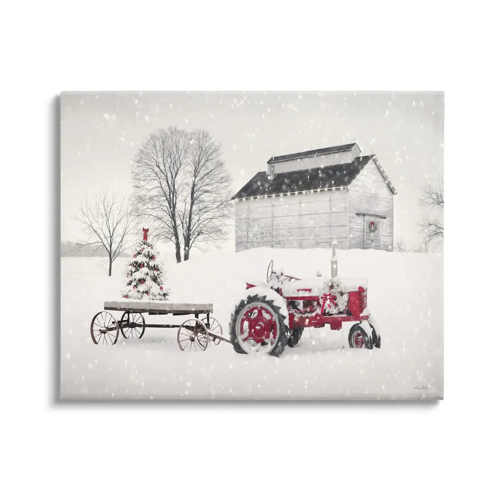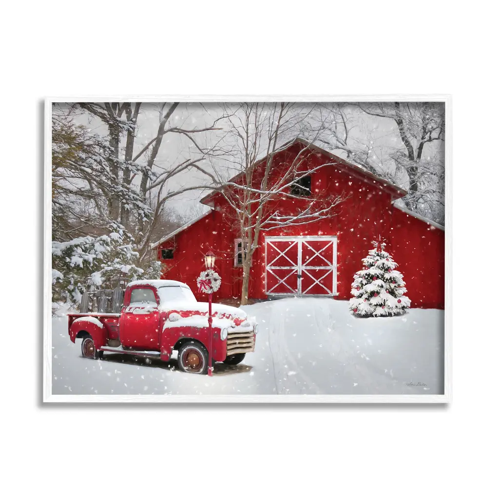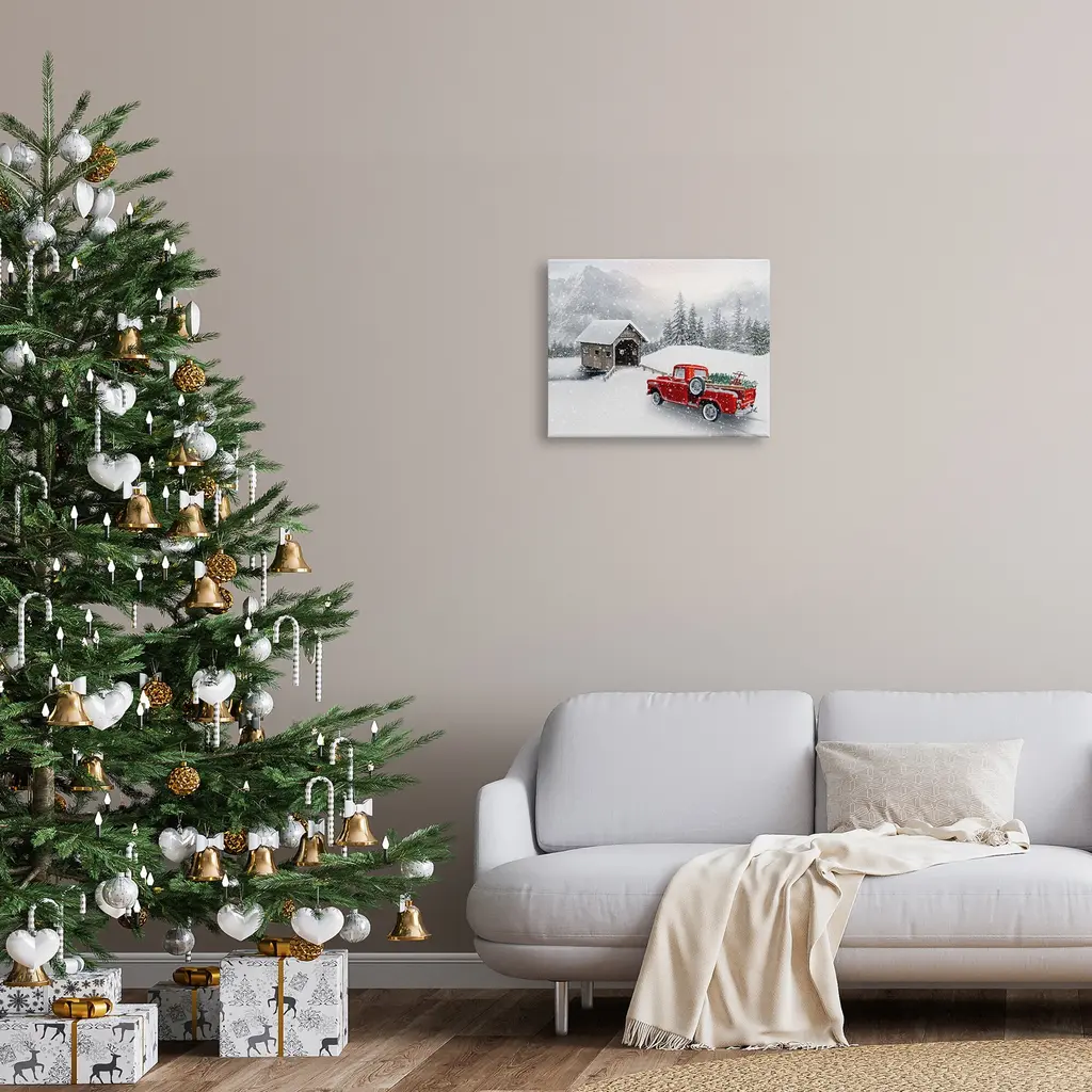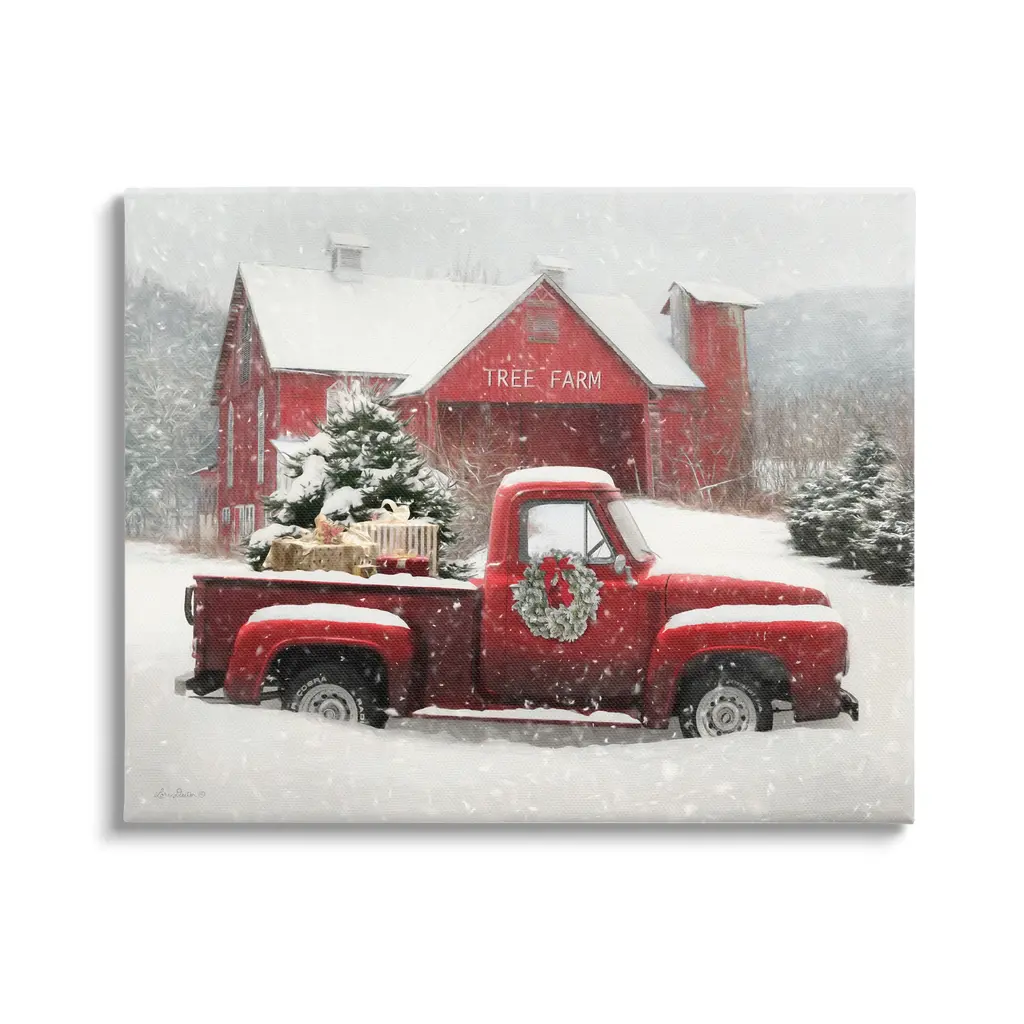 Stupell Relaxing Snowcapped Mountain Scenery Vintage Red Truck Canvas Wall Art - 20 X 16