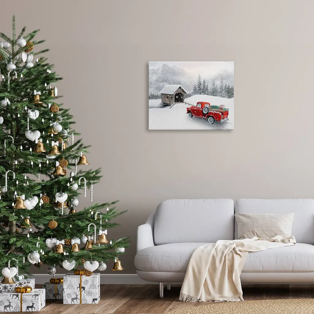 Stupell Relaxing Snowcapped Mountain Scenery Vintage Red Truck Canvas Wall Art - 30 X 24