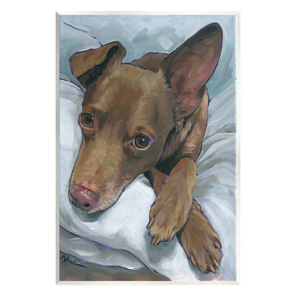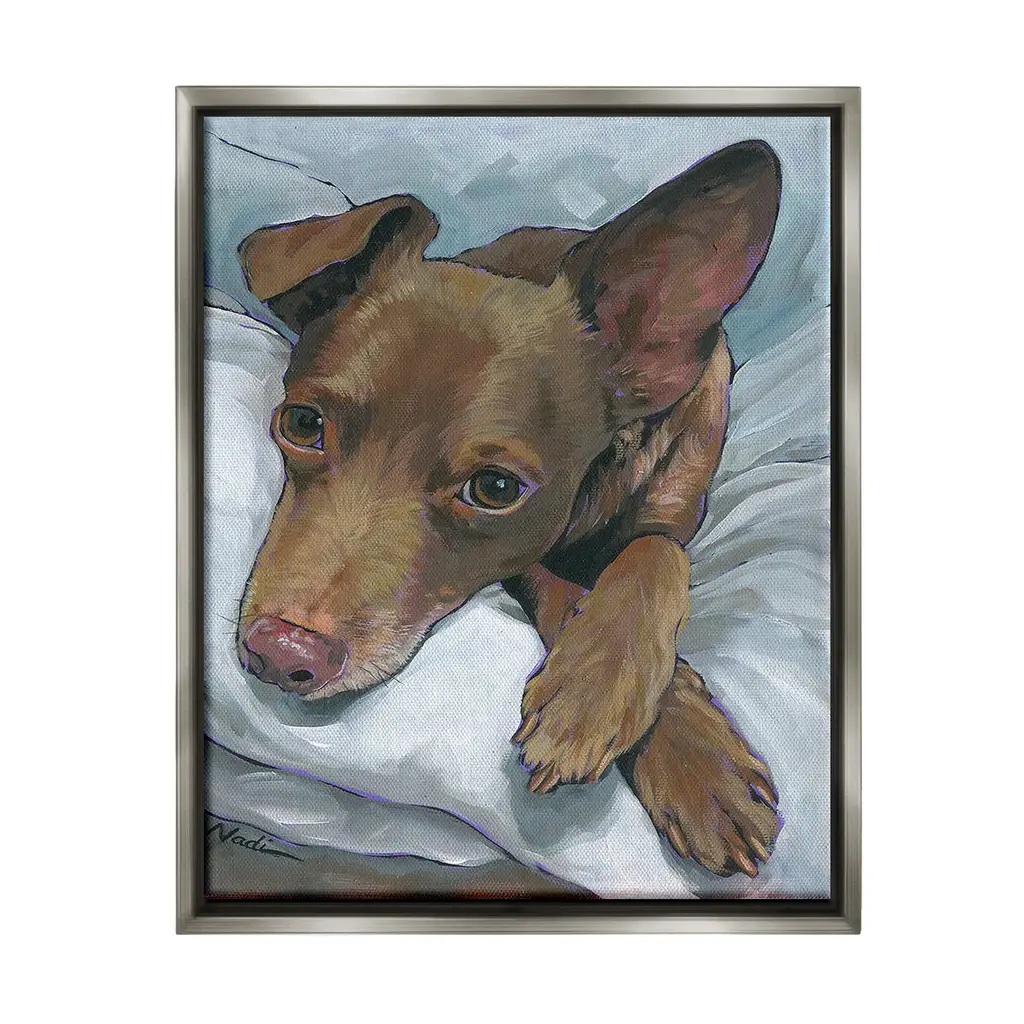 Elevate your home or office to the next level with Stupell Framed Floating Canvas Wall Art. Our premium hand-stretched canvas is mounted securely into a sturdy lightweight frame. The museum-style gap between the wrapped canvas and the box frame gives the illusion of floating artwork. Stupell Wall Art is made in the USA.Features: Dimensions: 17 x 1.7 x 21 Frame, 16 x 1.5 x 20 Canvas ArtFloating Frame Canvas Products are available in sizes 17"x21" and 25"x31". All Floating Frame Canvas Products have a 1.7" Depth.Wall Art is Ready to Hang with Hardware Free Hanging. No Installation required. For Easy Set Up Lean or Layer Artwork on Shelf or Against Wall. Artwork is Permently Fixed into the Frame.Our elevated 1.7" Thick Floating Frame is the perfect complement to our canvas style Wall Art. We use only the highest quality inks in house with industry leading printing solutions. Canvas is hand stretched over a durable wood foundation and then mounted securly into a Modern Box Frame. Made in the USA.Artwork Relates To: Painting, Animal, Canine, Dog, Mammal, Pet, Sleeping, Cuddle, RestDesign by Nadi Spencer