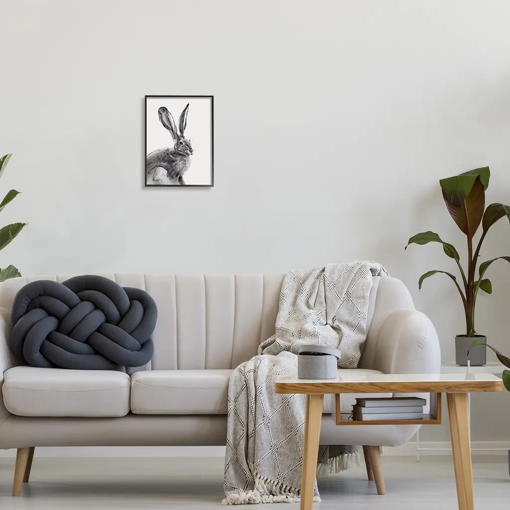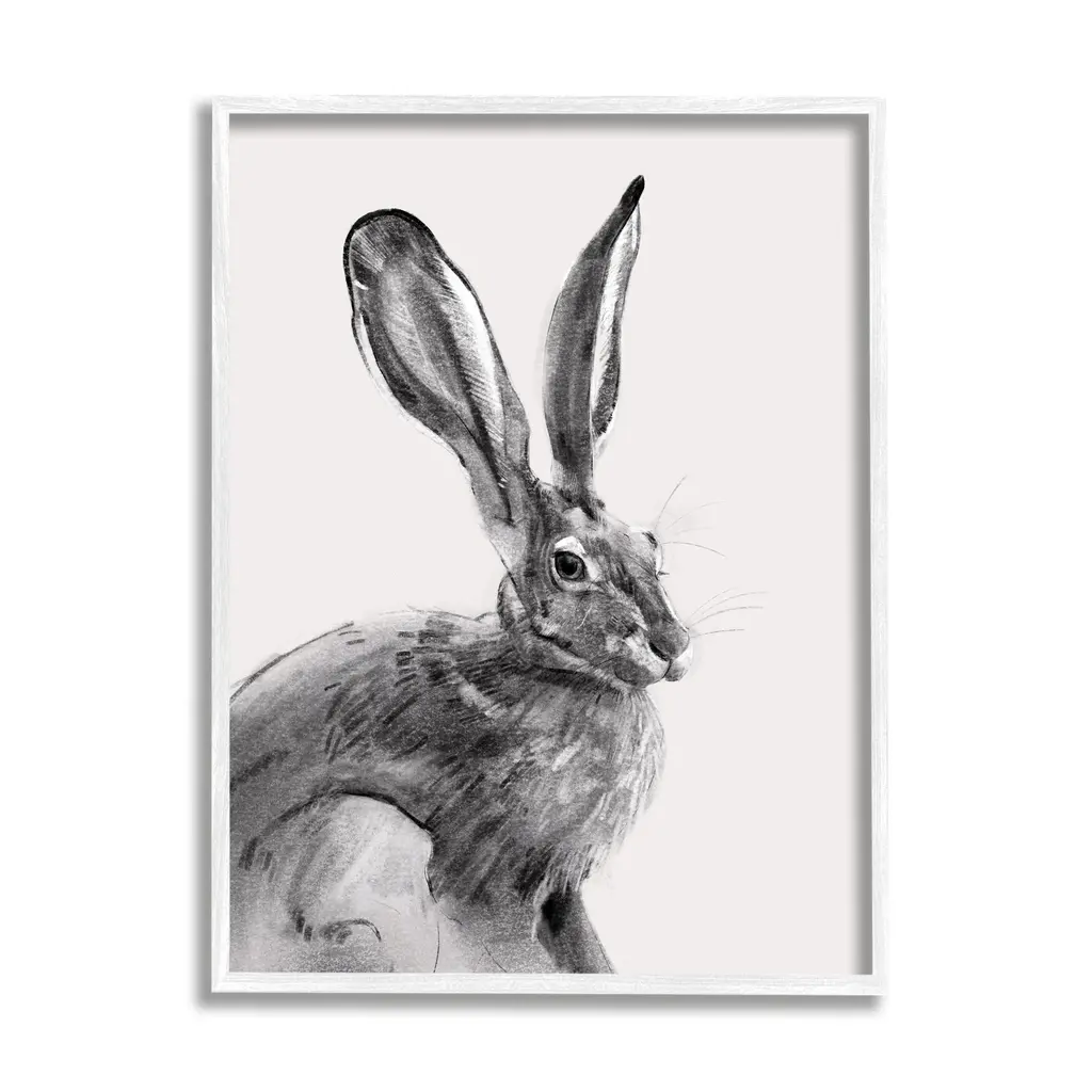 Stupell Resting Wild Hare Portrait Bold Face Rabbit Illustration Framed Wall Art - 11 X 14 - Black