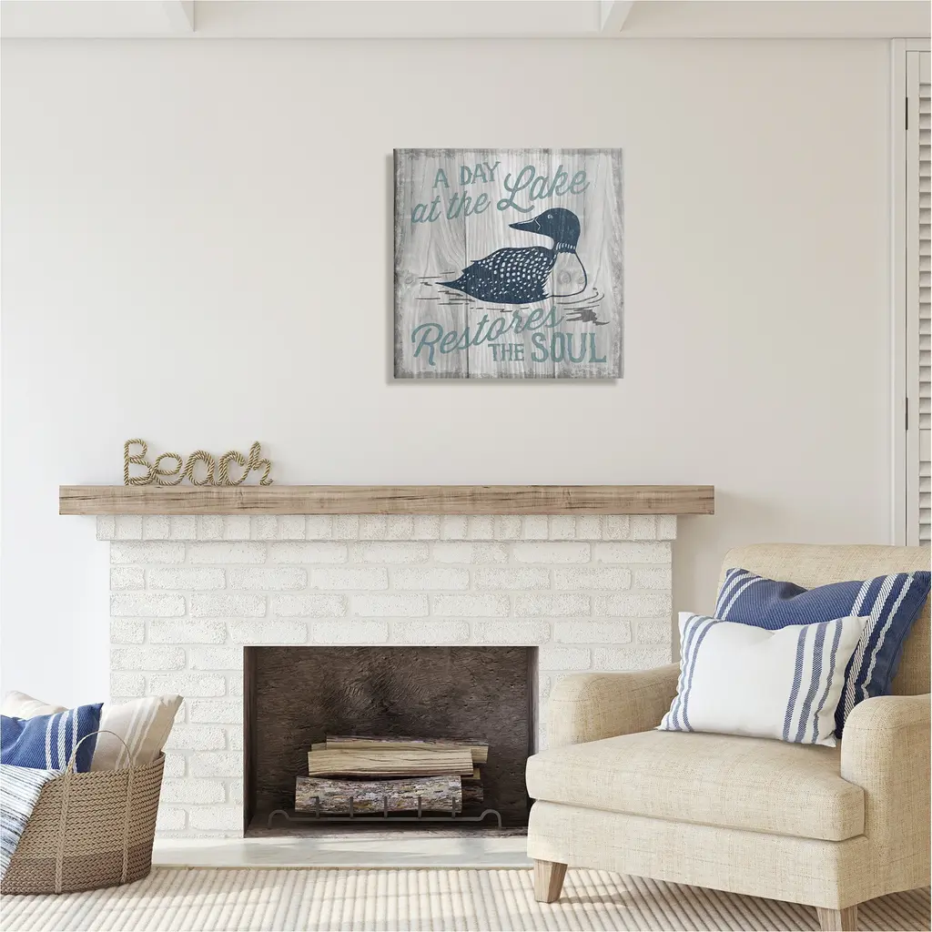 We create our stretched canvas to the highest standards. Using only the highest quality inks and canvas on Mimaki printers, we hand-cut and stretch each piece over a 1.5-inch thick wooden frame for hanging. As a result, the art comes ready to hang on the sturdy ledge with no installation required. Stupell Wall Art is made in the USA.Features: Dimensions: 17 x 1.5 x 17 InchesStretched Canvas Sizes Include Standard: 17 x 1.5 x 17 Large: 24 x 1.5 x 24 X-Large: 30 x 1.5 x 30 Oversized: 36 x 1.5 x 36Wall Art is Ready to Hang with Hardware Free Hanging. No installation required. For Easy Set Up Lean or Layer Artwork on Shelf or Against Wall.Our stretched canvas is created with the highest standards. We use only the highest quality inks and canvas on our in house Mimaki printers, and then hand cut and stretch each piece over a 1.5 inch thick wooden frame for hanging. Made In USA.Artwork Relates To: Duck, Lake, Rustic, A Day at the Lake Restores the SoulDesign by Laura Marshall