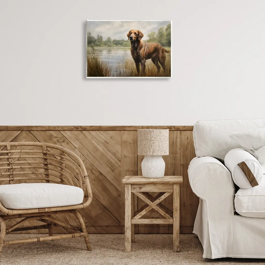 Stupell Retriever Dog & Pond Wall Plaque Art Design By Petal Prints Design - 19 X 13