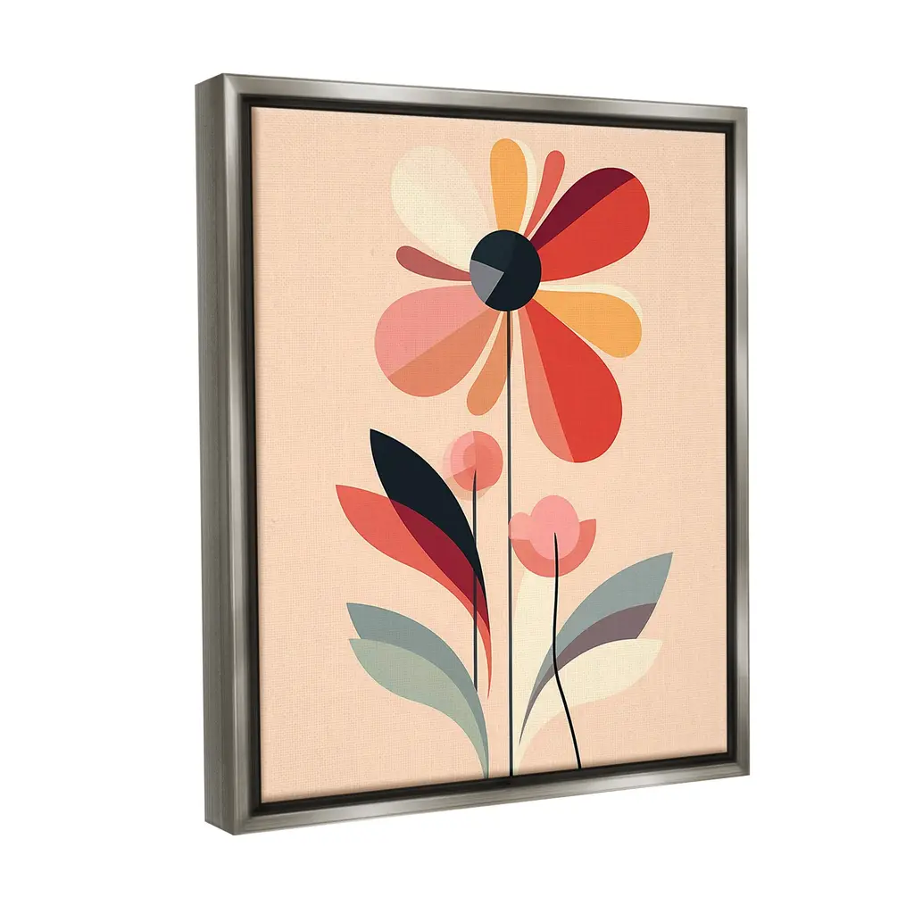Elevate your home or office to the next level with Stupell Framed Floating Canvas Wall Art. Our premium hand-stretched canvas is mounted securely into a sturdy lightweight frame. The museum-style gap between the wrapped canvas and the box frame gives the illusion of floating artwork. Stupell Wall Art is made in the USA.Features: Dimensions: 17 x 1.7 x 21 Frame, 16 x 1.5 x 20 Canvas ArtFloating Frame Canvas Products are available in sizes 17"x21" and 25"x31". All Floating Frame Canvas Products have a 1.7" Depth.Wall Art is Ready to Hang with Hardware Free Hanging. No Installation required. For Easy Set Up Lean or Layer Artwork on Shelf or Against Wall. Artwork is Permently Fixed into the Frame.Our elevated 1.7" Thick Floating Frame is the perfect complement to our canvas style Wall Art. We use only the highest quality inks in house with industry leading printing solutions. Canvas is hand stretched over a durable wood foundation and then mounted securly into a Modern Box Frame. Made in the USA.Artwork Relates To: Modern, Abstract, Floral, Flower, Blossom, Pattern, Geometric, Bloom, RetroDesign by Walker Noble
