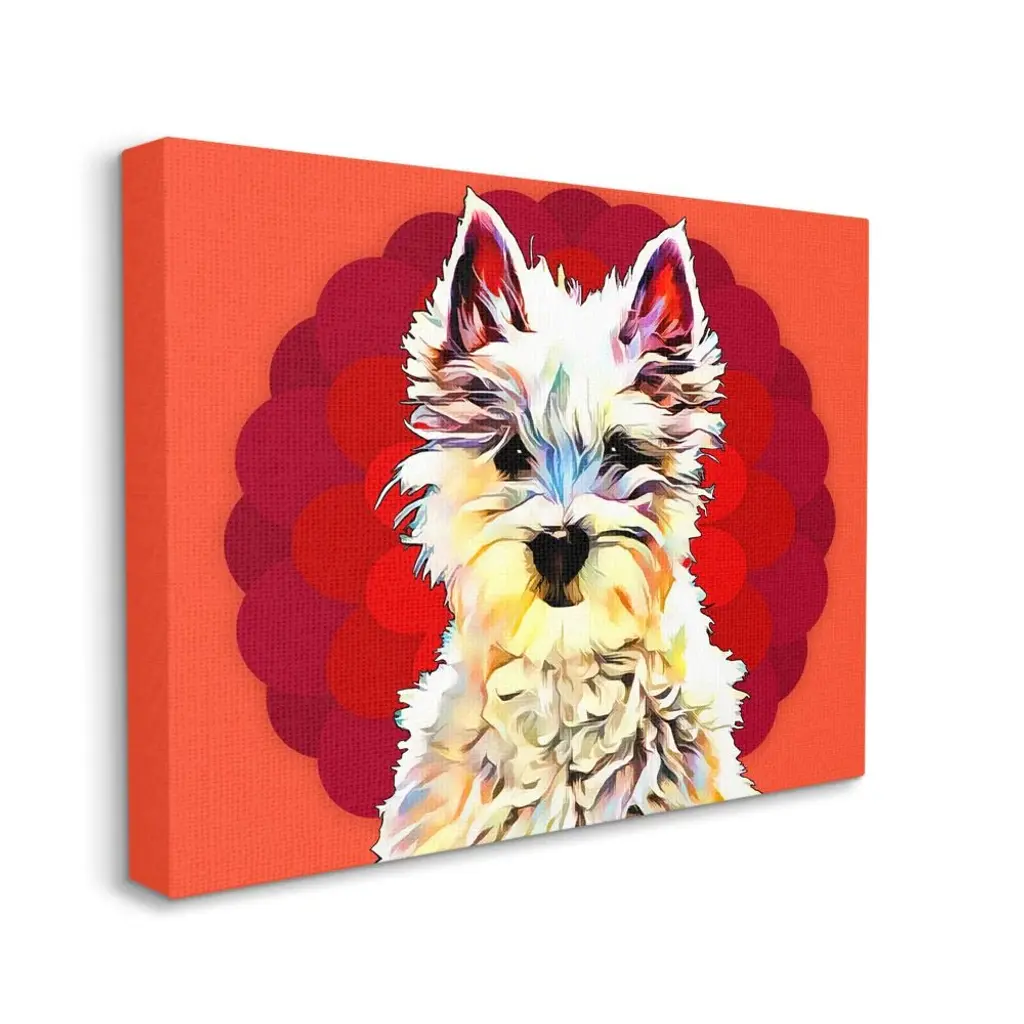 We create our stretched canvas to the highest standards. Using only the highest quality inks and canvas on Mimaki printers, we hand-cut and stretch each piece over a 1.5-inch thick wooden frame for hanging. As a result, the art comes ready to hang on the sturdy ledge with no installation required. Stupell Wall Art is made in the USA.Features: Dimensions: 16 x 1.5 x 20 InchesStretched Canvas Sizes Include Standard: 16 x 1.5 x 20 Large: 20 x 1.5 x 30 X-Large: 30 x 1.5 x 40 Oversized: 36 x 1.5 x 48Wall Art is Ready to Hang with Hardware Free Hanging. No installation required. For Easy Set Up Lean or Layer Artwork on Shelf or Against Wall.Our stretched canvas is created with the highest standards. We use only the highest quality inks and canvas on our in house Mimaki printers, and then hand cut and stretch each piece over a 1.5 inch thick wooden frame for hanging. Made In USA.Artwork Relates To: Animal, Canine, Dog, Mammal, Pet, Modern, TerrierDesign by Kamdon Kreations