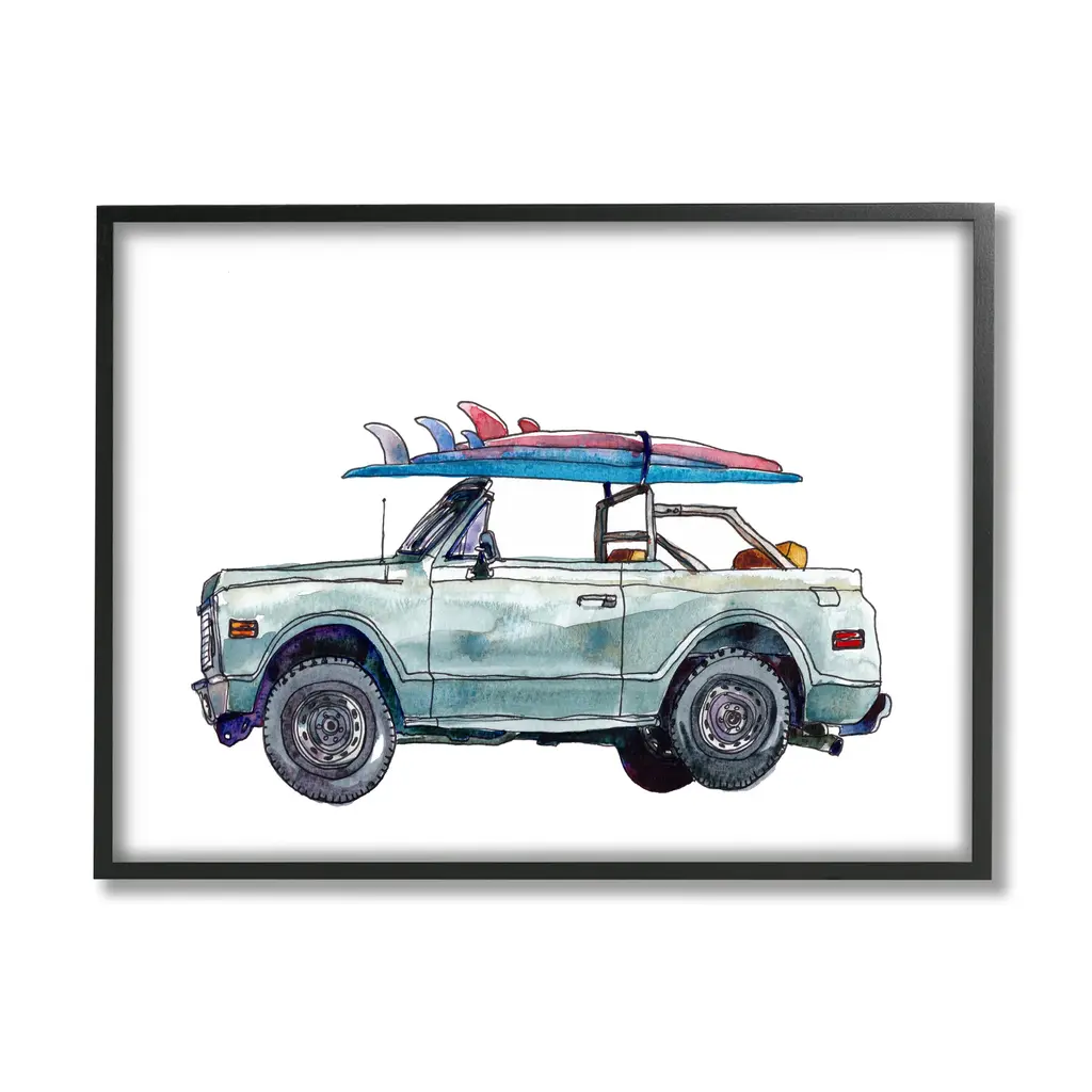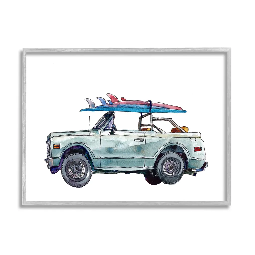 Stupell Retro Beach Cruiser With Surfboard Minimal Illustration Canvas Wall Art - Blue - 16 X 20
