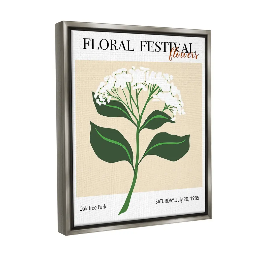Elevate your home or office to the next level with Stupell Framed Floating Canvas Wall Art. Our premium hand-stretched canvas is mounted securely into a sturdy lightweight frame. The museum-style gap between the wrapped canvas and the box frame gives the illusion of floating artwork. Stupell Wall Art is made in the USA.Features: Dimensions: 17 x 1.7 x 21 Frame, 16 x 1.5 x 20 Canvas ArtFloating Frame Canvas Products are available in sizes 17"x21" and 25"x31". All Floating Frame Canvas Products have a 1.7" Depth.Wall Art is Ready to Hang with Hardware Free Hanging. No Installation required. For Easy Set Up Lean or Layer Artwork on Shelf or Against Wall. Artwork is Permently Fixed into the Frame.Our elevated 1.7" Thick Floating Frame is the perfect complement to our canvas style Wall Art. We use only the highest quality inks in house with industry leading printing solutions. Canvas is hand stretched over a durable wood foundation and then mounted securly into a Modern Box Frame. Made in the USA.Artwork Relates To: Flower, Plant, Botanical, Abstract, Cottage, Modern, Retro, Floral FestivalDesign by Regina Moore