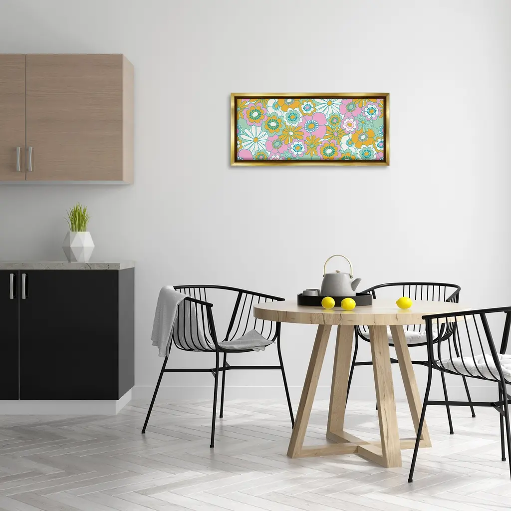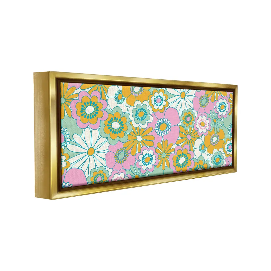 Elevate your home or office to the next level with Stupell Framed Floating Canvas Wall Art. Our premium hand-stretched canvas is mounted securely into a sturdy lightweight frame. The museum-style gap between the wrapped canvas and the box frame gives the illusion of floating artwork. Stupell Wall Art is made in the USA.Features: Dimensions: 25 x 1.7 x 11 Frame, 24 x 1.5 x 10 Canvas ArtFloating Frame Canvas Products are available in sizes 25"x11" and 31"x14". All Floating Frame Canvas Products have a 1.7" Depth.Wall Art is Ready to Hang with Hardware Free Hanging. No Installation required. For Easy Set Up Lean or Layer Artwork on Shelf or Against Wall. Artwork is Permently Fixed into the Frame.Our elevated 1.7" Thick Floating Frame is the perfect complement to our canvas style Wall Art. We use only the highest quality inks in house with industry leading printing solutions. Canvas is hand stretched over a durable wood foundation and then mounted securly into a Modern Box Frame. Made in the USA.Artwork Relates To: Pattern, Floral, Daisy, Flower, Plant, Groovy, Retro, ModernDesign by Carrie Cantwell