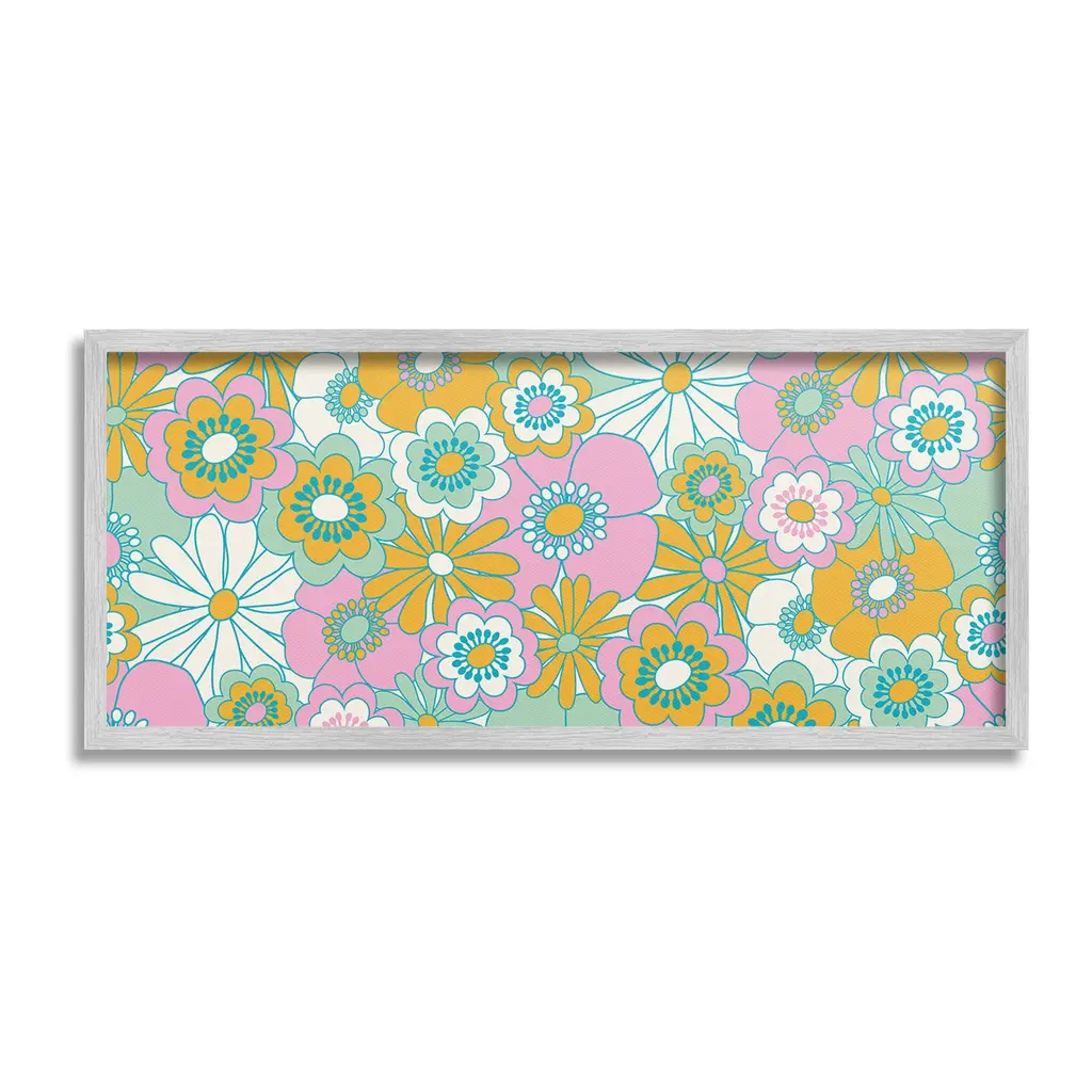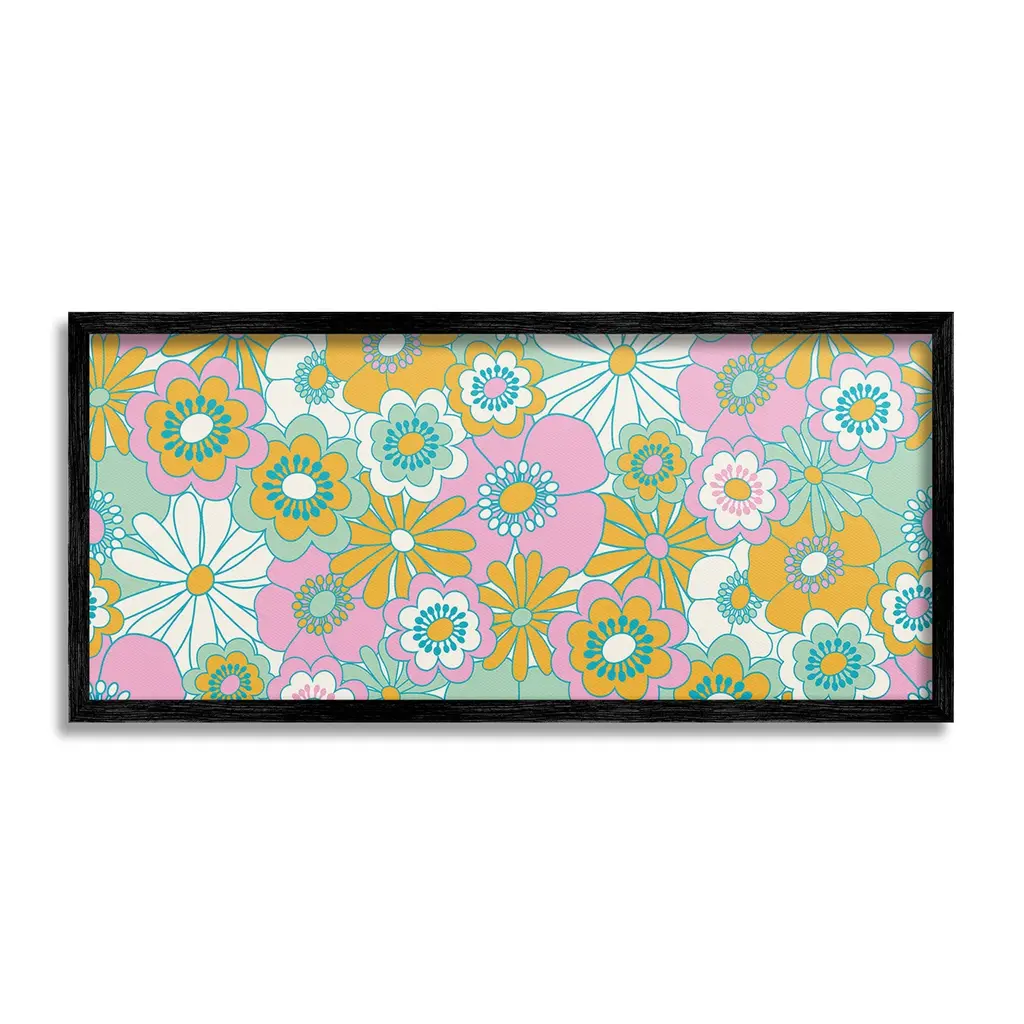 Add dimension to any room with our textured Framed Giclee Artwork. Our framed artwork is securely mounted into a 1.5-inch thick wood grain frame and ready to hang. Frames are available in three alluring styles: black, gray farmhouse and white. In addition, you should check out our oversized options if you want a statement piece. Stupell Wall Art is made in the USA.Features: Dimensions: 24 x 1.5 x 10 FramedFramed Giclee Product Sizes include 24"x10" and 30"x13". All Framed Giclee products have a 1.5" Depth.Wall Art is Ready to Hang with Hardware Free Hanging. No installation required. For Easy Set Up Lean or Layer Artwork on Shelf or Against Wall.Our giclée prints are carefully mounted on a durable MDF backing, and then perfectly finished in a 1.5 inch thick woodgrain frame. Mounted frame colors include black, gray farmhouse and white. Made In USA.Artwork Relates To: Pattern, Floral, Daisy, Flower, Plant, Groovy, Retro, ModernDesign by Carrie Cantwell