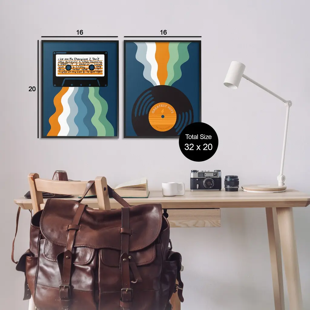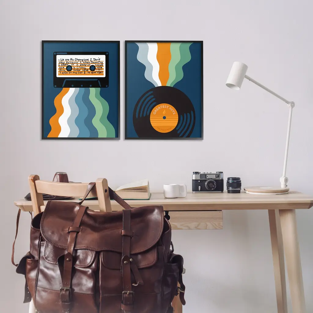 Fill any space in your home or office with our Framed Wall Art Sets. Our framed artwork is securely mounted into a 1.5-inch thick wood grain frame and ready to hang. Frames are available in three alluring styles: black, gray farmhouse and white. Stupell Wall Art is made in the USA.Features: Dimensions: 2 Piece Set, Each Panel is 11 x 1.5 x 14 FramedTwo Piece Framed Giclee Sets are available as 11"x14", 16"x20" or 24"x30" Panels. All Framed Giclee Products have a 1.5" Depth.Wall Art is Ready to Hang with Hardware Free Hanging. No installation required. For Easy Set Up Lean or Layer Artwork on Shelf or Against Wall.Curated Wall Art Sets make it easy for you complete the theme for any room. Our giclée prints are carefully mounted on a durable MDF backing, and then perfectly finished in a 1.5 inch thick woodgrain frame. Mounted frame colors include black, gray farmhouse and white. Made In USA.Artwork Relates To: Cassette, Vinyl Record, Music, Musician, Retro, Groovy, Pattern, Stripes, Wavy, PlaylistDesign by Laura Marr