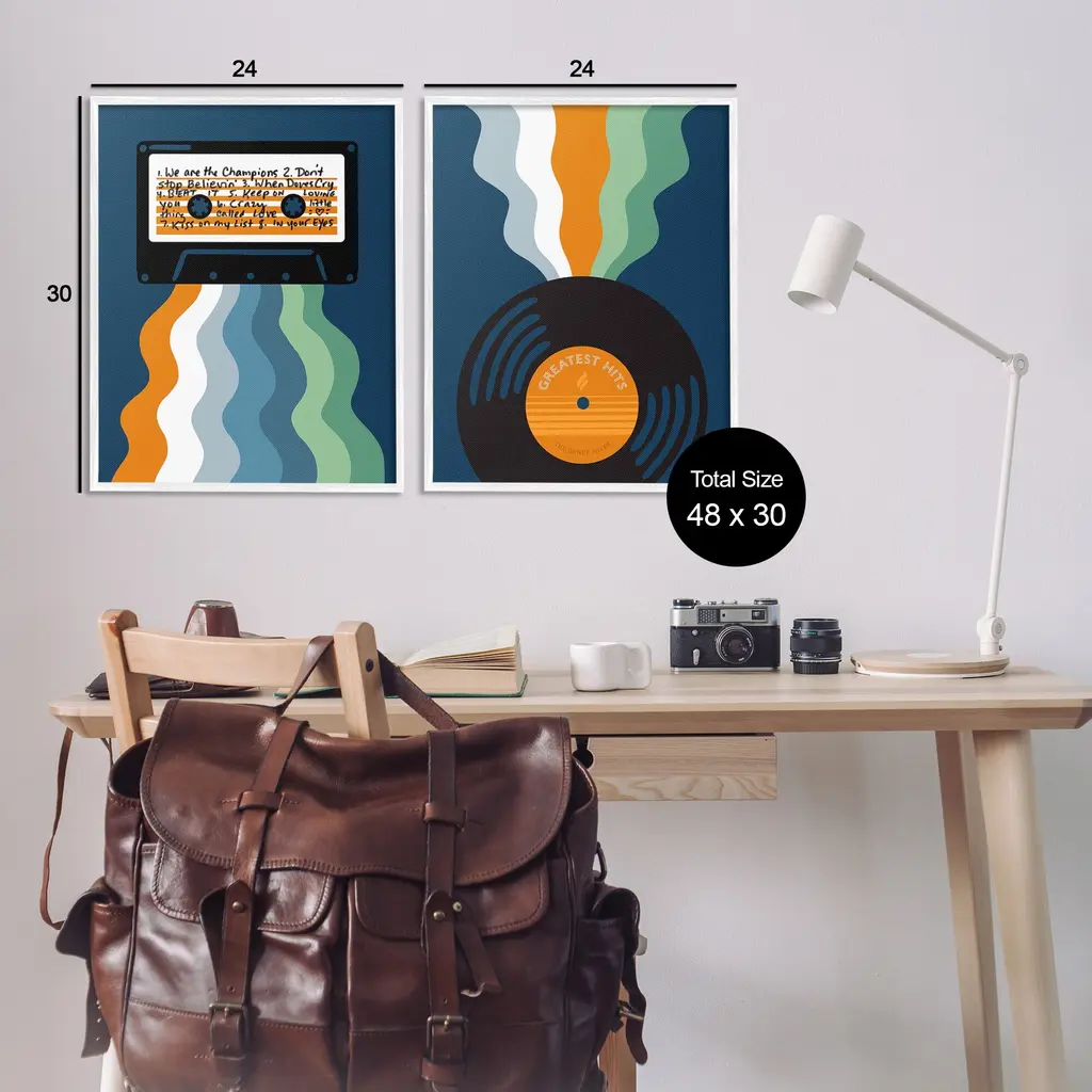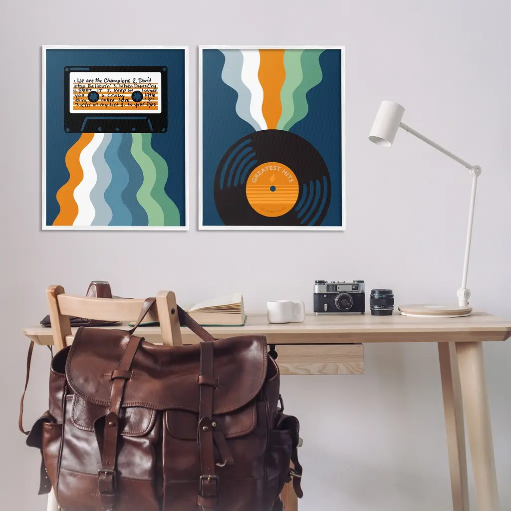 Fill any space in your home or office with our Framed Wall Art Sets. Our framed artwork is securely mounted into a 1.5-inch thick wood grain frame and ready to hang. Frames are available in three alluring styles: black, gray farmhouse and white. Stupell Wall Art is made in the USA.Features: Dimensions: 2 Piece Set, Each Panel is 11 x 1.5 x 14 FramedTwo Piece Framed Giclee Sets are available as 11"x14", 16"x20" or 24"x30" Panels. All Framed Giclee Products have a 1.5" Depth.Wall Art is Ready to Hang with Hardware Free Hanging. No installation required. For Easy Set Up Lean or Layer Artwork on Shelf or Against Wall.Curated Wall Art Sets make it easy for you complete the theme for any room. Our giclée prints are carefully mounted on a durable MDF backing, and then perfectly finished in a 1.5 inch thick woodgrain frame. Mounted frame colors include black, gray farmhouse and white. Made In USA.Artwork Relates To: Cassette, Vinyl Record, Music, Musician, Retro, Groovy, Pattern, Stripes, Wavy, PlaylistDesign by Laura Marr