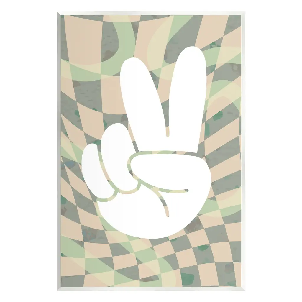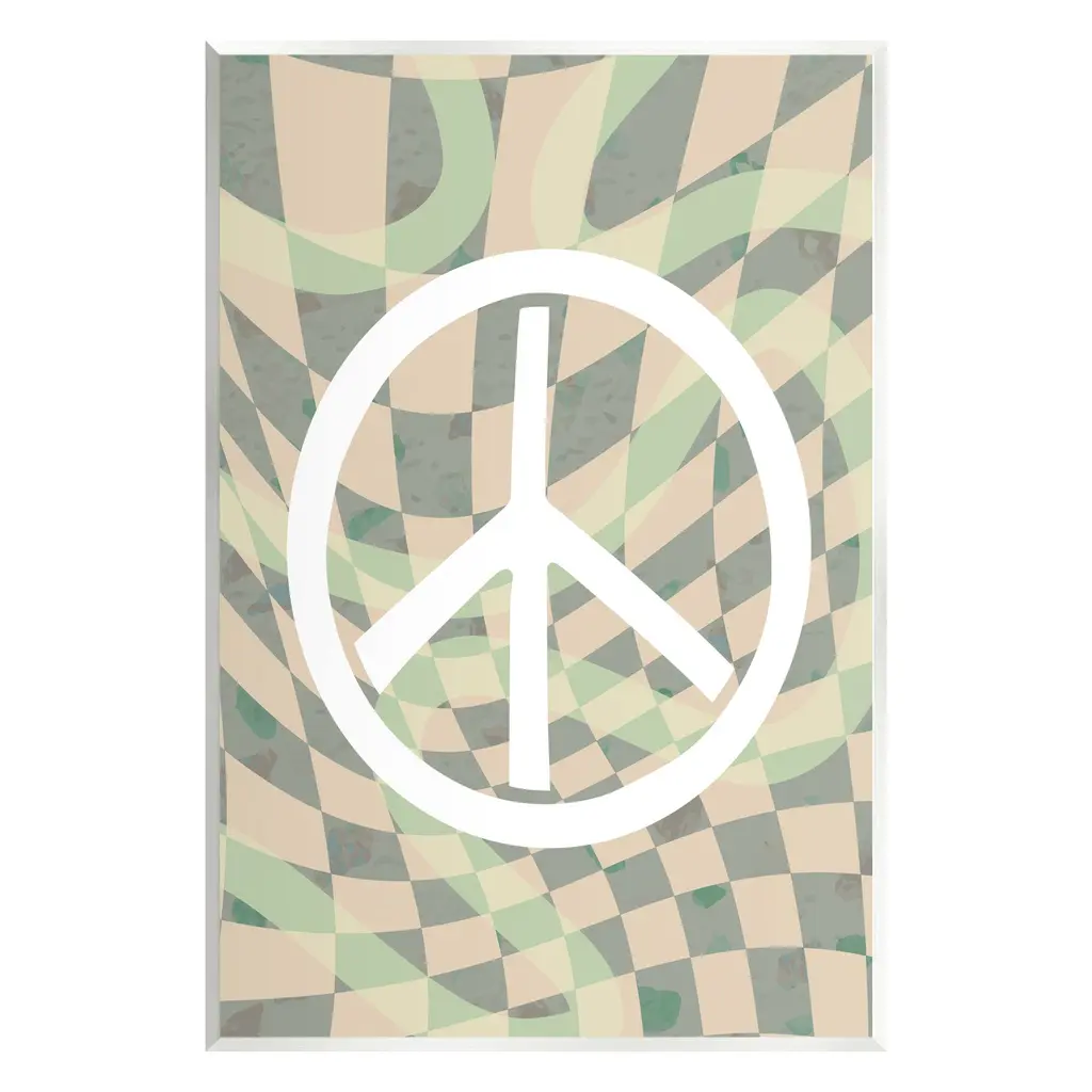 Our wall plaques start as high-quality lithograph prints mounted on durable 0.5-inch thick MDF wood. Each piece is hand finished and comes with a fresh layer of white foil on the sides to give it a crisp, clean look. Plaques arrive ready to hang without installation and come with removable plastic corners to keep them from damage in transit. Stupell Wall Art is made in the USA.Features: Dimensions: 10 x 0.5 x 15 InchesWall Plaque Sizes Include Standard: 10 x 0.5 x 15 Oversized: 13 x 0.5 x 19Wall Art is Ready to Hang with Hardware Free Hanging. No installation required. For Easy Set Up Lean or Layer Artwork on Shelf or Against Wall.All of our wall plaques start off as high quality lithograph prints that are then mounted on durable 0.5 inch thick MDF wood. Each piece is hand finished and comes with a fresh layer of foil on the sides to give it a crisp clean look. Made In USA.Artwork Relates To: Peace, Symbol, Retro, Pattern, CheckeredDesign by Daphne Polselli