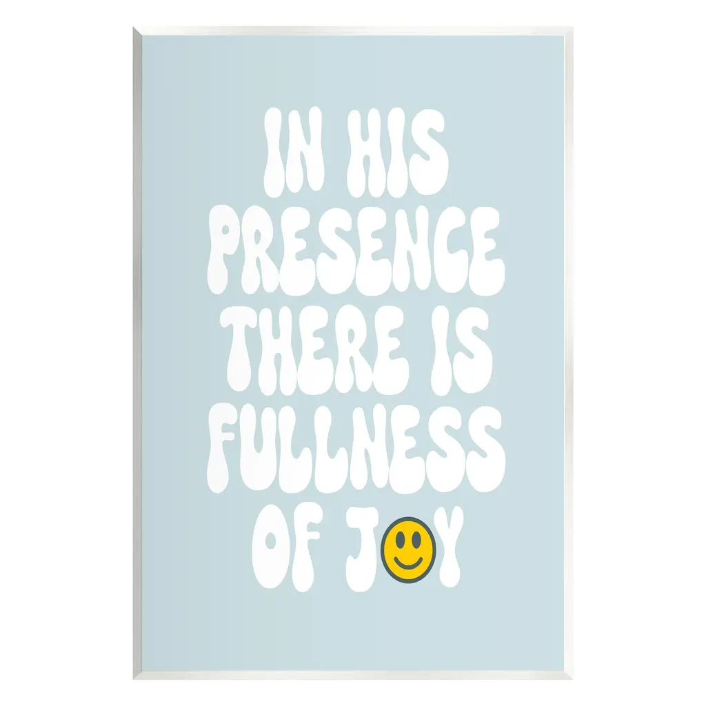 Our wall plaques start as high-quality lithograph prints mounted on durable 0.5-inch thick MDF wood. Each piece is hand finished and comes with a fresh layer of white foil on the sides to give it a crisp, clean look. Plaques arrive ready to hang without installation and come with removable plastic corners to keep them from damage in transit. Stupell Industries Wall Art is made in the USA.Features: Dimensions: 10 x 0.5 x 15 InchesWall Plaque Sizes Include Standard: 10 x 0.5 x 15 Oversized: 13 x 0.5 x 19Wall Art is Ready to Hang with Hardware Free Hanging. No installation required. For Easy Set Up Lean or Layer Artwork on Shelf or Against Wall.All of our wall plaques start off as high quality lithograph prints that are then mounted on durable 0.5 inch thick MDF wood. Each piece is hand finished and comes with a fresh layer of foil on the sides to give it a crisp clean look. Made In USA.Artwork Relates To: Phrase, Minimal, Religious, Christian, In His Presence There is Fullness of JoyDesign by Lil' Rue