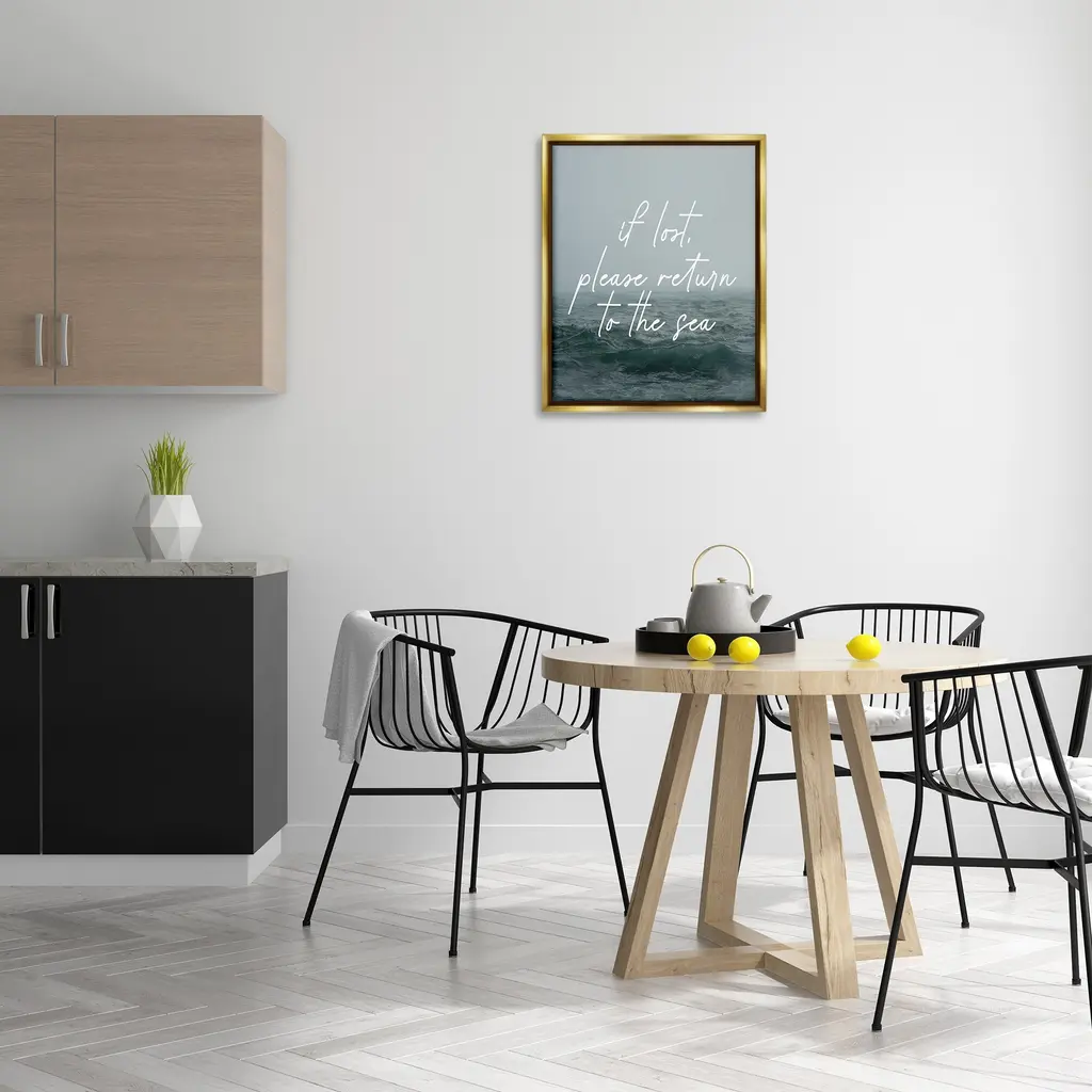 Elevate your home or office to the next level with Stupell Framed Floating Canvas Wall Art. Our premium hand-stretched canvas is mounted securely into a sturdy lightweight frame. The museum-style gap between the wrapped canvas and the box frame gives the illusion of floating artwork. Stupell Wall Art is made in the USA.Features: Dimensions: 17 x 1.7 x 21 Frame, 16 x 1.5 x 20 Canvas ArtFloating Frame Canvas Products are available in sizes 17"x21" and 25"x31". All Floating Frame Canvas Products have a 1.7" Depth.Wall Art is Ready to Hang with Hardware Free Hanging. No Installation required. For Easy Set Up Lean or Layer Artwork on Shelf or Against Wall. Artwork is Permently Fixed into the Frame.Our elevated 1.7" Thick Floating Frame is the perfect complement to our canvas style Wall Art. We use only the highest quality inks in house with industry leading printing solutions. Canvas is hand stretched over a durable wood foundation and then mounted securly into a Modern Box Frame. Made in the USA.Artwork Relates To: Sea, Water, Sea Waves, Ocean, Nautical, Maritime, Phrase, Beach, If Lost Please Return to the SeaDesign by Lil' Rue