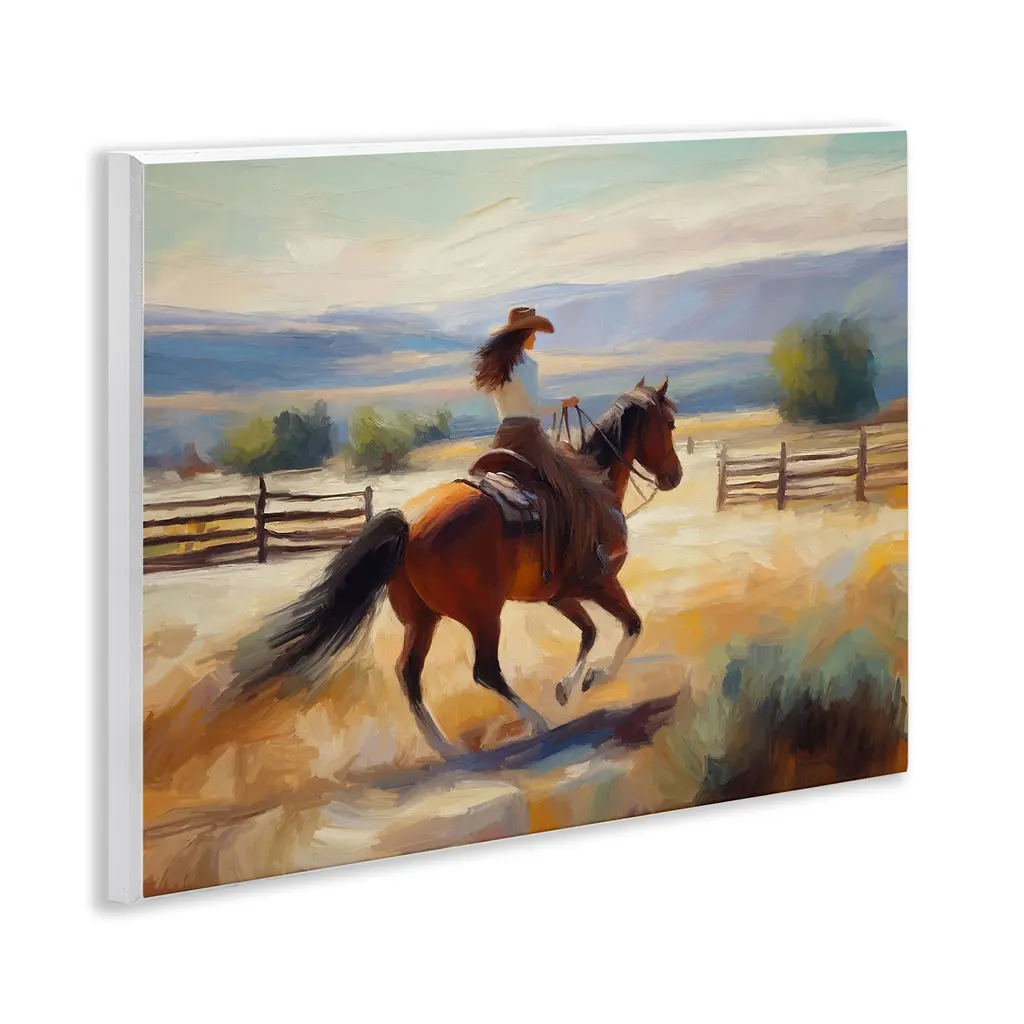 Our wall plaques start as high-quality lithograph prints mounted on durable 0.5-inch thick MDF wood. Each piece is hand finished and comes with a fresh layer of white foil on the sides to give it a crisp, clean look. Plaques arrive ready to hang without installation and come with removable plastic corners to keep them from damage in transit. Stupell Wall Art is made in the USA.Features: Dimensions: 14 x 0.5 x 11 InchesWall Art is Ready to Hang with Hardware Free Hanging. No installation required. For Easy Set Up Lean or Layer Artwork on Shelf or Against Wall.All of our wall plaques start off as high quality lithograph prints that are then mounted on durable 0.5 inch thick MDF wood. Each piece is hand finished and comes with a fresh layer of foil on the sides to give it a crisp clean look. Made In USA.Artwork Relates To: Animal, Horse, Mammal, Person, Woman, Equestrian, Halter, Stallion, Cowgirl, WesternDesign by Ramona Murdock