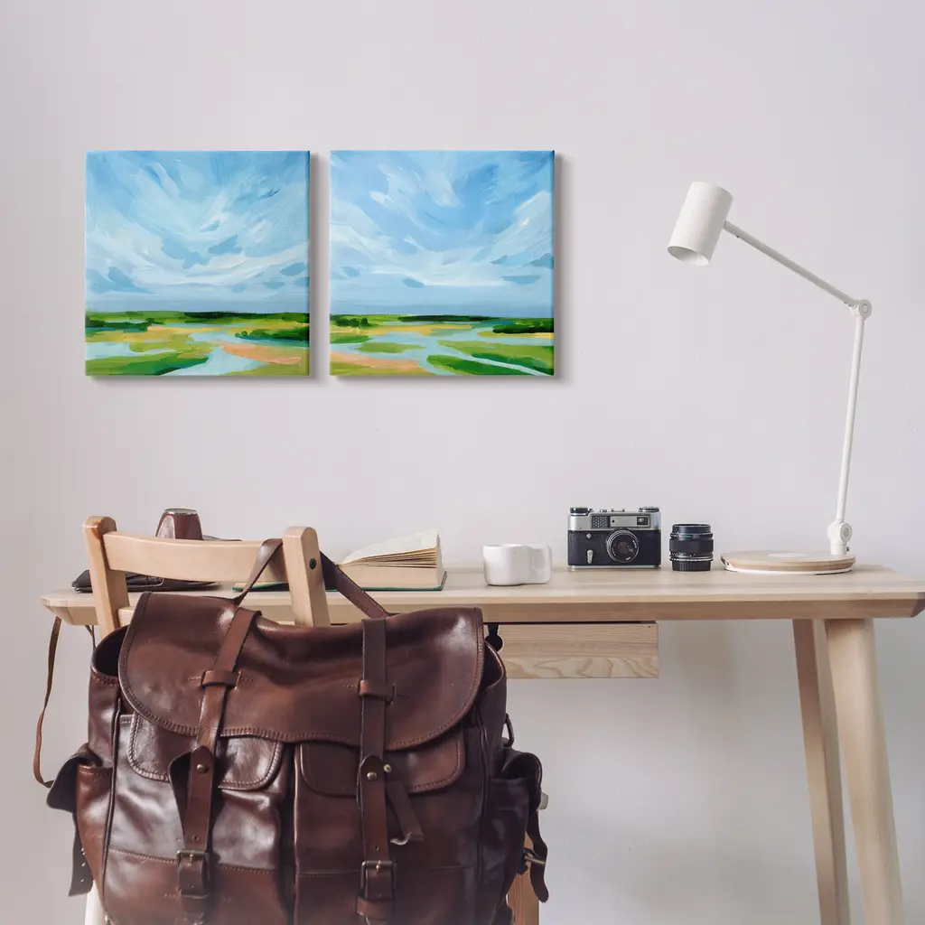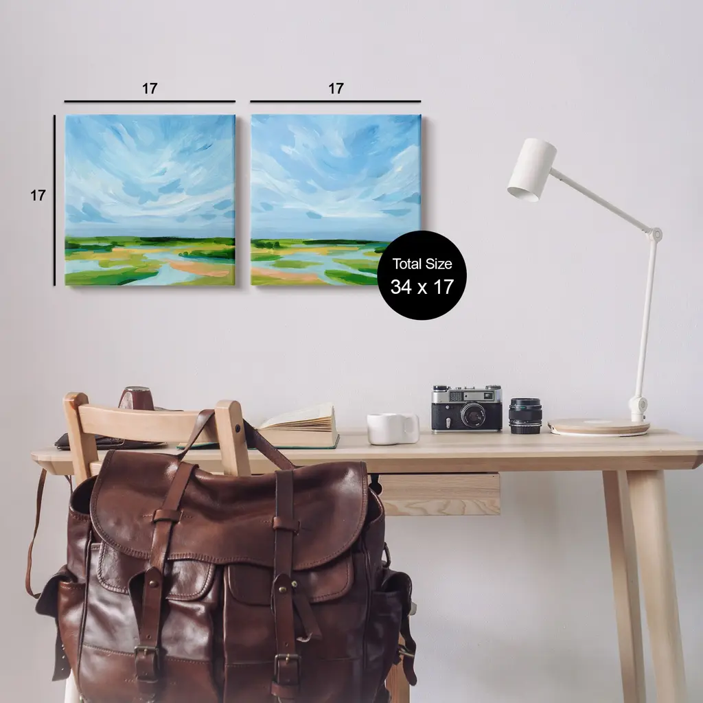 Fill any space with Stupell Wall Art Sets. We create our stretched canvas to the highest standards. Using only the highest quality inks and canvas on Mimaki printers, we hand-cut and stretch each piece over a 1.5-inch thick wooden frame for hanging. As a result, the art comes ready to hang on the sturdy ledge with no installation required. Stupell Wall Art is made in the USA.Features: Dimensions: 2 Piece Set, Each Panel is 17 x 1.5 x 17 InchesStretched Canvas Set Sizes Include Standard: 2pc, Each is 17 x 1.5 x 17 Large: 2pc, Eachis 24 x 1.5 x 24Wall Art is Ready to Hang with Hardware Free Hanging. No installation required. For Easy Set Up Lean or Layer Artwork on Shelf or Against Wall.Our stretched canvas is created with the highest standards. We use only the highest quality inks and canvas on our in house Mimaki printers, and then hand cut and stretch each piece over a 1.5 inch thick wooden frame for hanging. Made In USA.Artwork Relates To: Painting, Nature, Outdoors, Sky, Sea, Water, ModernDesign by Victoria Barnes