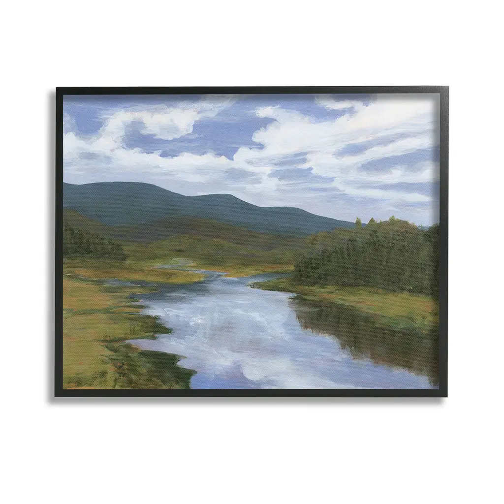 Elevate your home or office to the next level with Stupell Framed Floating Canvas Wall Art. Our premium hand-stretched canvas is mounted securely into a sturdy lightweight frame. The museum-style gap between the wrapped canvas and the box frame gives the illusion of floating artwork. Stupell Wall Art is made in the USA.Features: Dimensions: 21 x 1.7 x 17 Frame, 20 x 1.5 x 16 Canvas ArtFloating Frame Canvas Products are available in sizes 21"x17" and 31"x25". All Floating Frame Canvas Products have a 1.7" Depth.Wall Art is Ready to Hang with Hardware Free Hanging. No Installation required. For Easy Set Up Lean or Layer Artwork on Shelf or Against Wall. Artwork is Permently Fixed into the Frame.Our elevated 1.7" Thick Floating Frame is the perfect complement to our canvas style Wall Art. We use only the highest quality inks in house with industry leading printing solutions. Canvas is hand stretched over a durable wood foundation and then mounted securly into a Modern Box Frame. Made in the USA.Artwork Relates To: Nature, Water, Field, Landscape, Scenery, Stream, River, Wilderness, Creek, Clouds, MountainDesign by Michael Willett