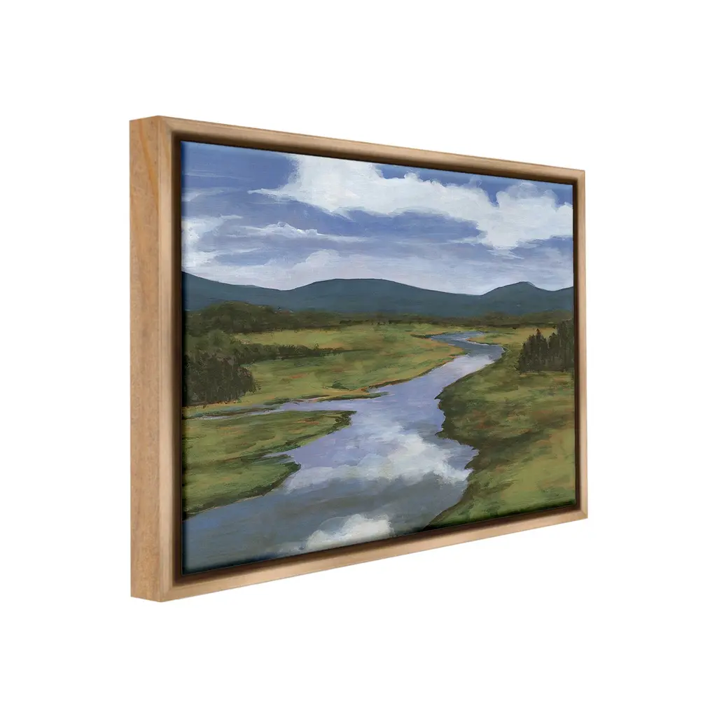 Elevate your home or office to the next level with Stupell Framed Floating Canvas Wall Art. Our premium hand-stretched canvas is mounted securely into a sturdy lightweight frame. The museum-style gap between the wrapped canvas and the box frame gives the illusion of floating artwork. Stupell Wall Art is made in the USA.Features: Dimensions: 21 x 1.7 x 17 Frame, 20 x 1.5 x 16 Canvas ArtFloating Frame Canvas Products are available in sizes 21"x17" and 31"x25". All Floating Frame Canvas Products have a 1.7" Depth.Wall Art is Ready to Hang with Hardware Free Hanging. No Installation required. For Easy Set Up Lean or Layer Artwork on Shelf or Against Wall. Artwork is Permently Fixed into the Frame.Our elevated 1.7" Thick Floating Frame is the perfect complement to our canvas style Wall Art. We use only the highest quality inks in house with industry leading printing solutions. Canvas is hand stretched over a durable wood foundation and then mounted securly into a Modern Box Frame. Made in the USA.Artwork Relates To: Nature, Water, Field, Landscape, Scenery, Stream, River, Wilderness, Creek, Clouds, MountainDesign by Michael Willett