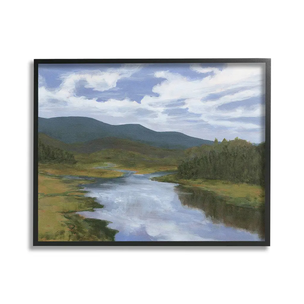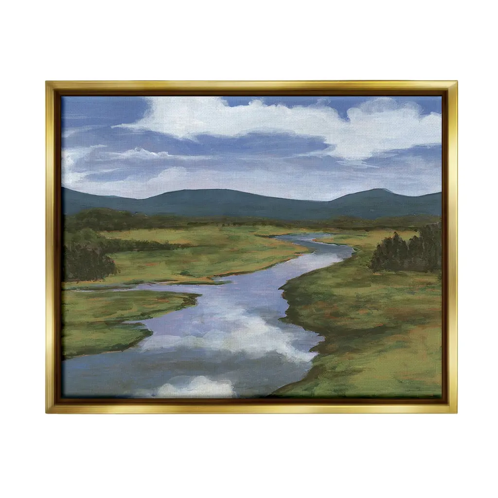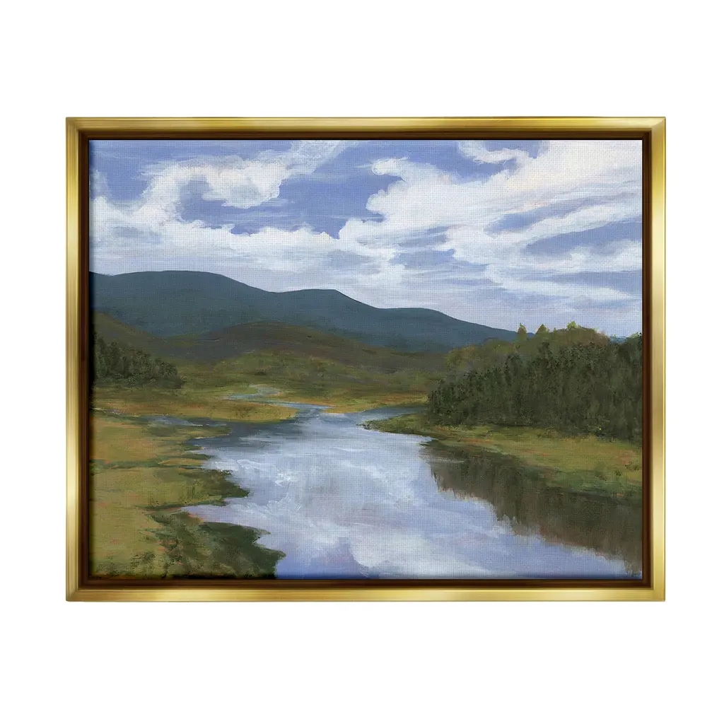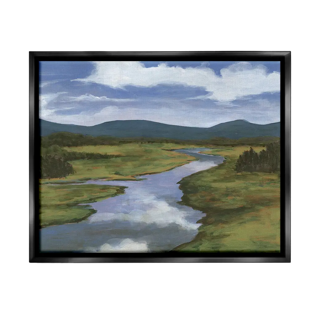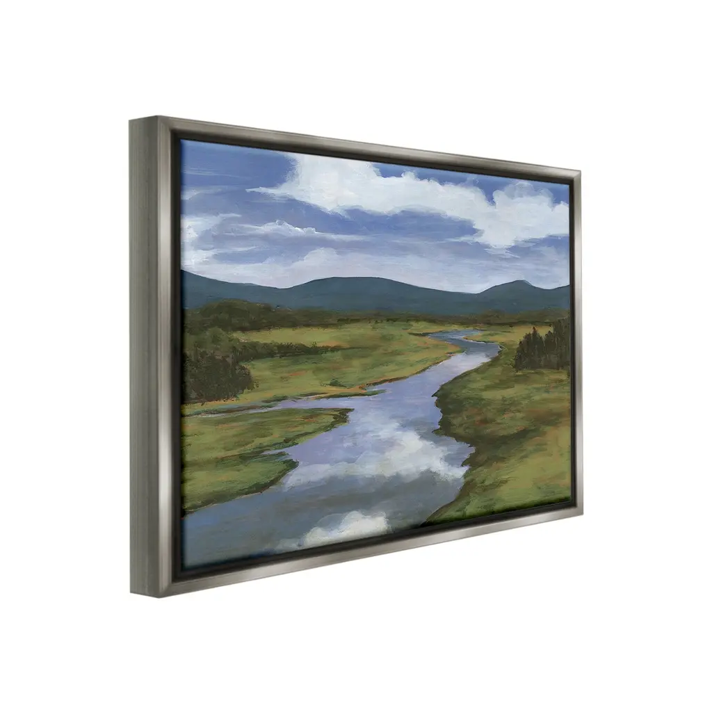 Elevate your home or office to the next level with Stupell Framed Floating Canvas Wall Art. Our premium hand-stretched canvas is mounted securely into a sturdy lightweight frame. The museum-style gap between the wrapped canvas and the box frame gives the illusion of floating artwork. Stupell Wall Art is made in the USA.Features: Dimensions: 21 x 1.7 x 17 Frame, 20 x 1.5 x 16 Canvas ArtFloating Frame Canvas Products are available in sizes 21"x17" and 31"x25". All Floating Frame Canvas Products have a 1.7" Depth.Wall Art is Ready to Hang with Hardware Free Hanging. No Installation required. For Easy Set Up Lean or Layer Artwork on Shelf or Against Wall. Artwork is Permently Fixed into the Frame.Our elevated 1.7" Thick Floating Frame is the perfect complement to our canvas style Wall Art. We use only the highest quality inks in house with industry leading printing solutions. Canvas is hand stretched over a durable wood foundation and then mounted securly into a Modern Box Frame. Made in the USA.Artwork Relates To: Nature, Water, Field, Landscape, Scenery, Stream, River, Wilderness, Creek, Clouds, MountainDesign by Michael Willett