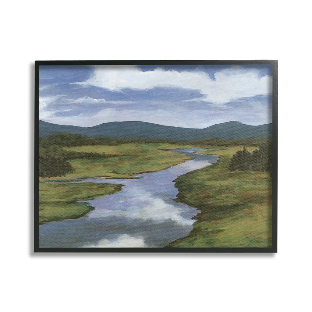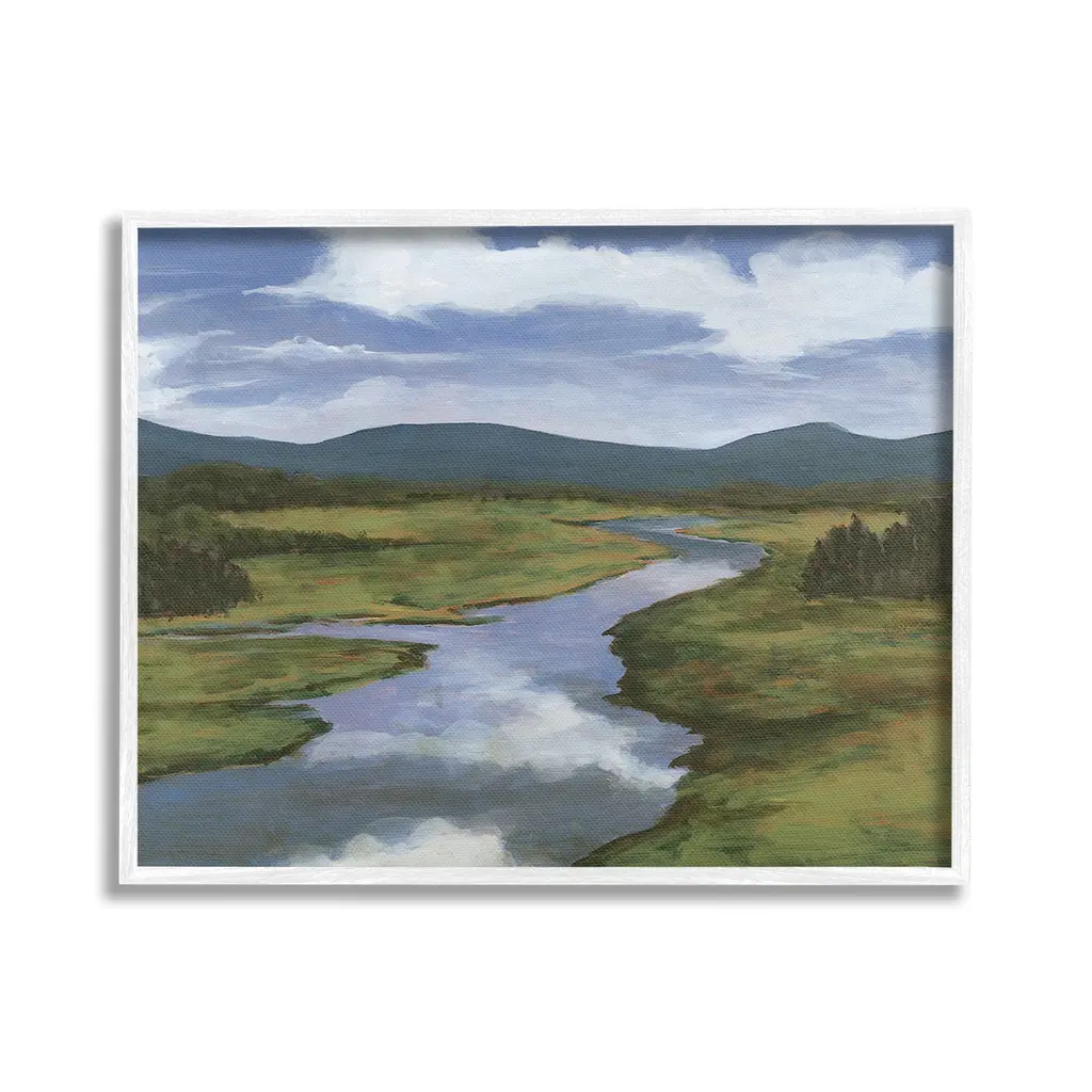 Add dimension to any room with our textured Framed Giclee Artwork. Our framed artwork is securely mounted into a 1.5-inch thick wood grain frame and ready to hang. Frames are available in three alluring styles: black, gray farmhouse and white. In addition, you should check out our oversized options if you want a statement piece. Stupell Wall Art is made in the USA.Features: Dimensions: 14 x 1.5 x 11 FramedFramed Giclee Products are available in the sizes 14"x11", 20"x16" or 30"x24". All Framed Giclee Products have a 1.5" Depth. Wall Art is Ready to Hang with Hardware Free Hanging. No installation required. For Easy Set Up Lean or Layer Artwork on Shelf or Against Wall.Our giclée prints are carefully mounted on a durable MDF backing, and then perfectly finished in a 1.5 inch thick woodgrain frame. Mounted frame colors include black, gray farmhouse and white. Made In USA.Artwork Relates To: Nature, Water, Field, Landscape, Scenery, Stream, River, Wilderness, Creek, Clouds, MountainDesign by Michael Willett