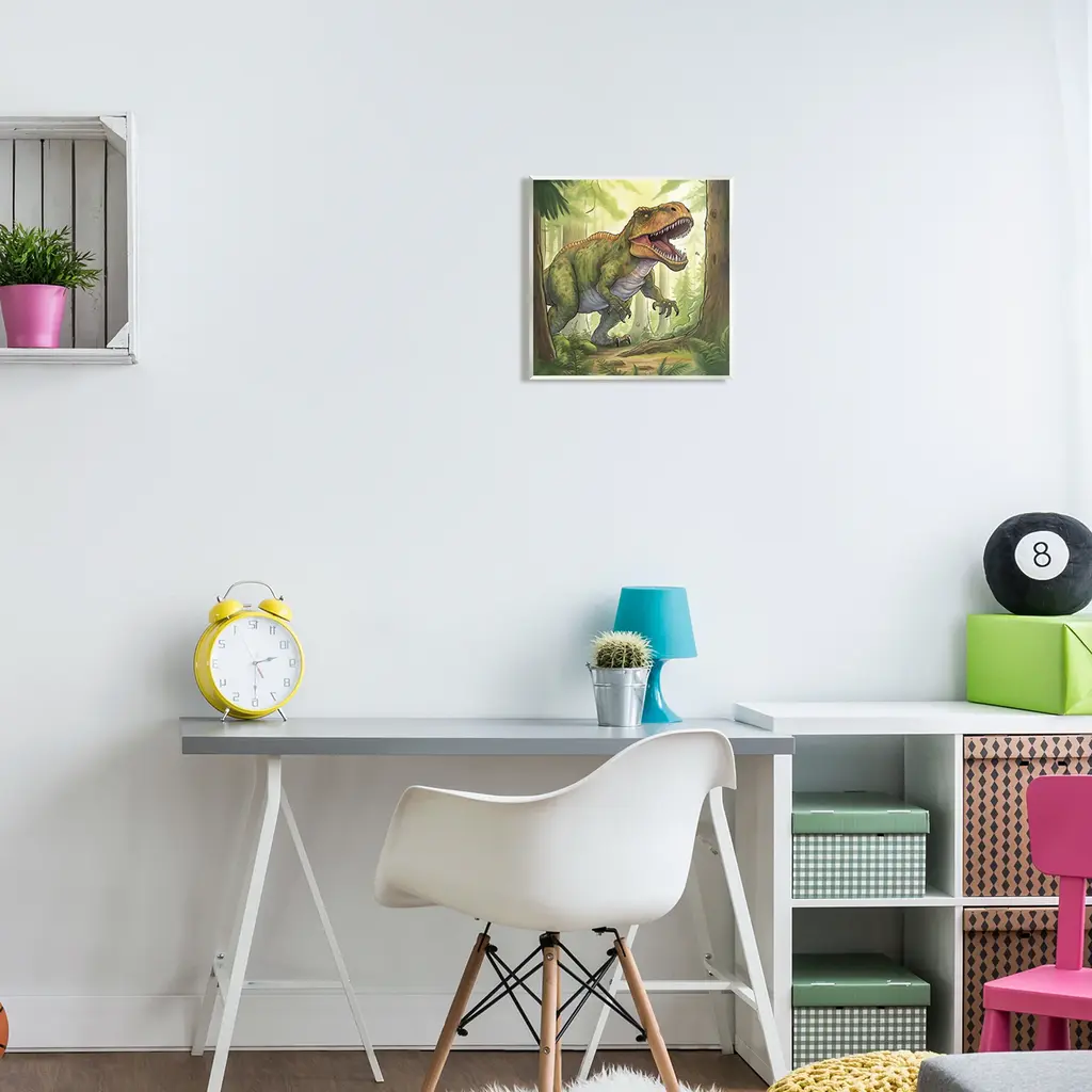 Our wall plaques start as high-quality lithograph prints mounted on durable 0.5-inch thick MDF wood. Each piece is hand finished and comes with a fresh layer of white foil on the sides to give it a crisp, clean look. Plaques arrive ready to hang without installation and come with removable plastic corners to keep them from damage in transit. Stupell Wall Art is made in the USA.Features: Dimensions: 12 x 0.5 x 12 InchesWall Art is Ready to Hang with Hardware Free Hanging. No installation required. For Easy Set Up Lean or Layer Artwork on Shelf or Against Wall.All of our wall plaques start off as high quality lithograph prints that are then mounted on durable 0.5 inch thick MDF wood. Each piece is hand finished and comes with a fresh layer of foil on the sides to give it a crisp clean look. Made In USA.Artwork Relates To: Animal, Dinosaur, Reptile, T-Rex, Plant, Vegetation, Jungle, Nature, Landscape, SceneryDesign by Wumples