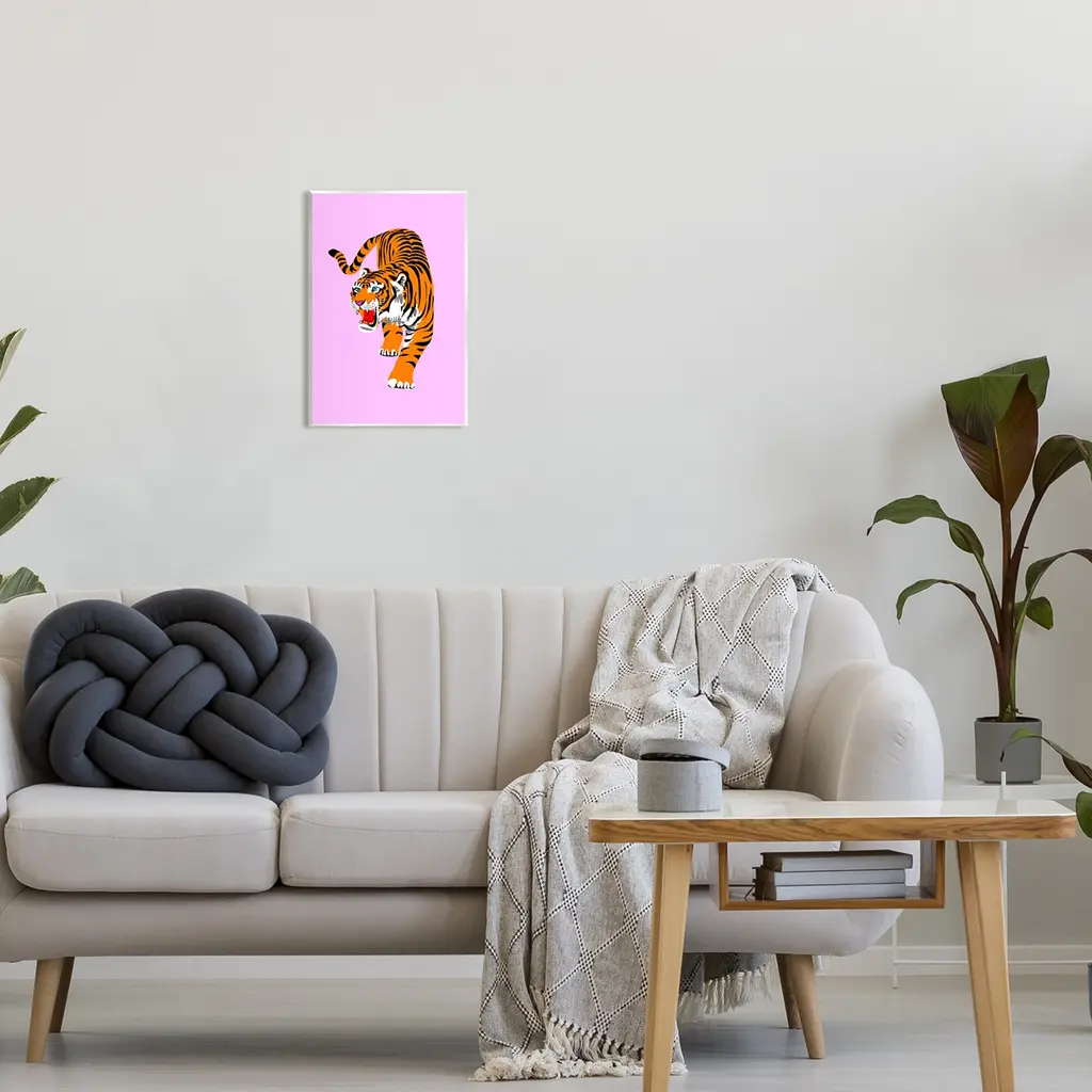 Stupell Roaring Tiger On Pink Wall Plaque Art Design By House Of Lulu - 10 X 15