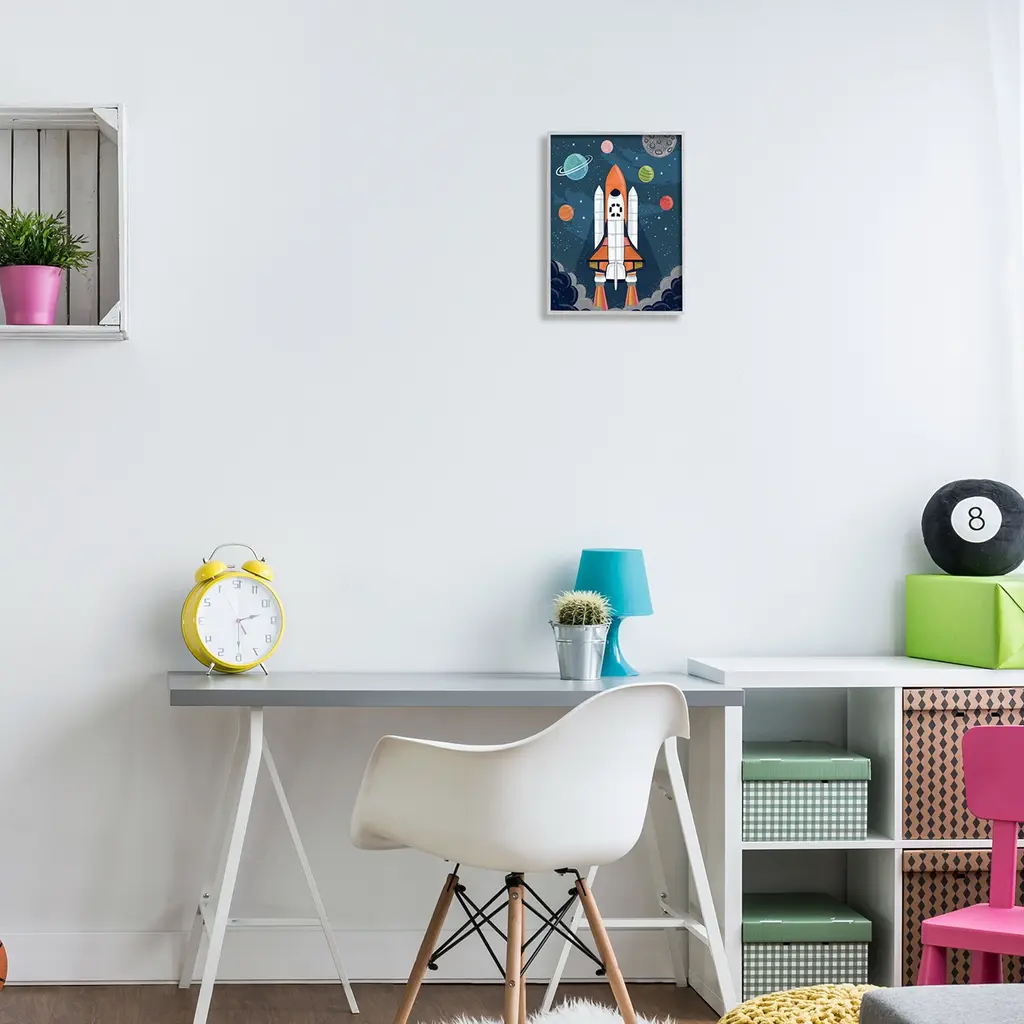 Stupell Rocket Ship Ready For Flight Outer Space Planets Framed Wall Art - Blue - 11 X 14 - Grey