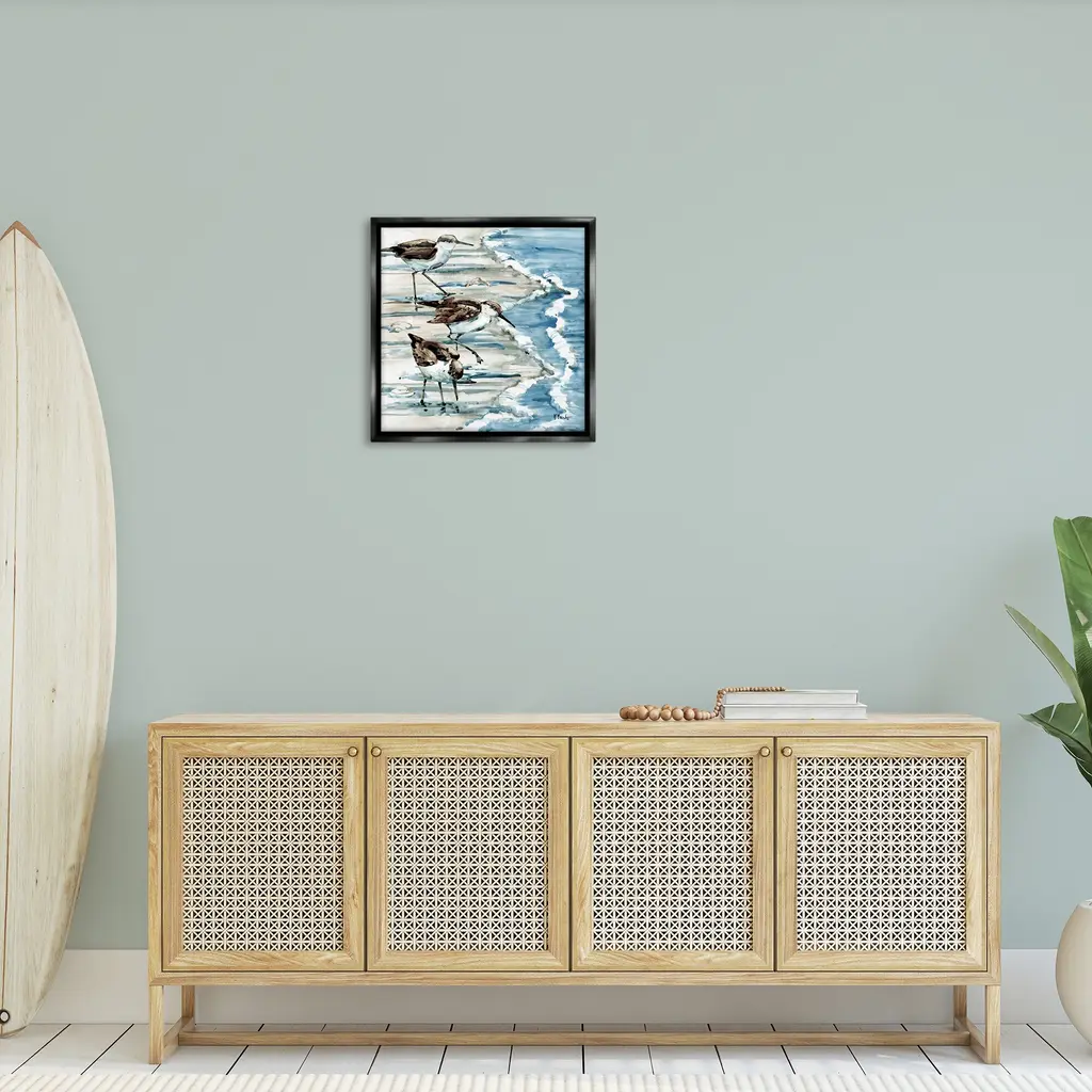 Elevate your home or office to the next level with Stupell Framed Floating Canvas Wall Art. Our premium hand-stretched canvas is mounted securely into a sturdy lightweight frame. The museum-style gap between the wrapped canvas and the box frame gives the illusion of floating artwork. Stupell Wall Art is made in the USA.Features: Dimensions: 18 x 1.7 x 18 Frame, 17 x 1.5 x 17 Canvas ArtFloating Frame Canvas Products are available in sizes 18"x18" and 25"x25". All Floating Frame Canvas Products have a 1.7" Depth.Wall Art is Ready to Hang with Hardware Free Hanging. No Installation required. For Easy Set Up Lean or Layer Artwork on Shelf or Against Wall. Artwork is Permently Fixed into the Frame.Our elevated 1.7" Thick Floating Frame is the perfect complement to our canvas style Wall Art. We use only the highest quality inks in house with industry leading printing solutions. Canvas is hand stretched over a durable wood foundation and then mounted securly into a Modern Box Frame. Made in the USA.Artwork Relates To: Bird, Animal, Sea, Nature, Shoreline, Beach, Scenery, SandpipersDesign by Paul Brent