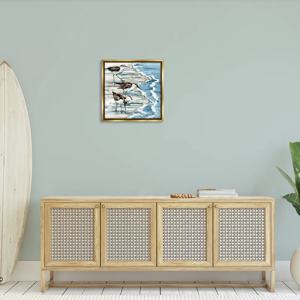 Elevate your home or office to the next level with Stupell Framed Floating Canvas Wall Art. Our premium hand-stretched canvas is mounted securely into a sturdy lightweight frame. The museum-style gap between the wrapped canvas and the box frame gives the illusion of floating artwork. Stupell Wall Art is made in the USA.Features: Dimensions: 18 x 1.7 x 18 Frame, 17 x 1.5 x 17 Canvas ArtFloating Frame Canvas Products are available in sizes 18"x18" and 25"x25". All Floating Frame Canvas Products have a 1.7" Depth.Wall Art is Ready to Hang with Hardware Free Hanging. No Installation required. For Easy Set Up Lean or Layer Artwork on Shelf or Against Wall. Artwork is Permently Fixed into the Frame.Our elevated 1.7" Thick Floating Frame is the perfect complement to our canvas style Wall Art. We use only the highest quality inks in house with industry leading printing solutions. Canvas is hand stretched over a durable wood foundation and then mounted securly into a Modern Box Frame. Made in the USA.Artwork Relates To: Bird, Animal, Sea, Nature, Shoreline, Beach, Scenery, SandpipersDesign by Paul Brent