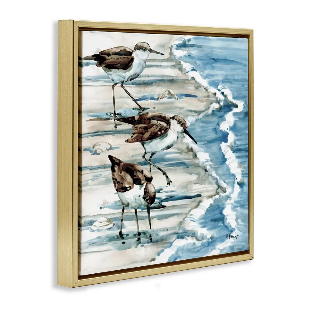 Stupell Rockhampton Sandpipers Beach Ripples Framed Floater Canvas Wall Art Design By Paul Brent - 25 X 25 - Gold