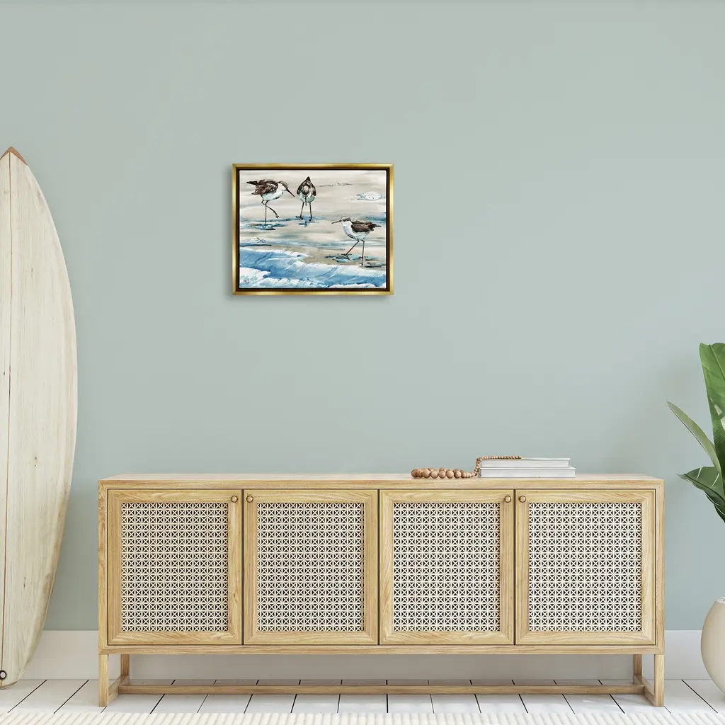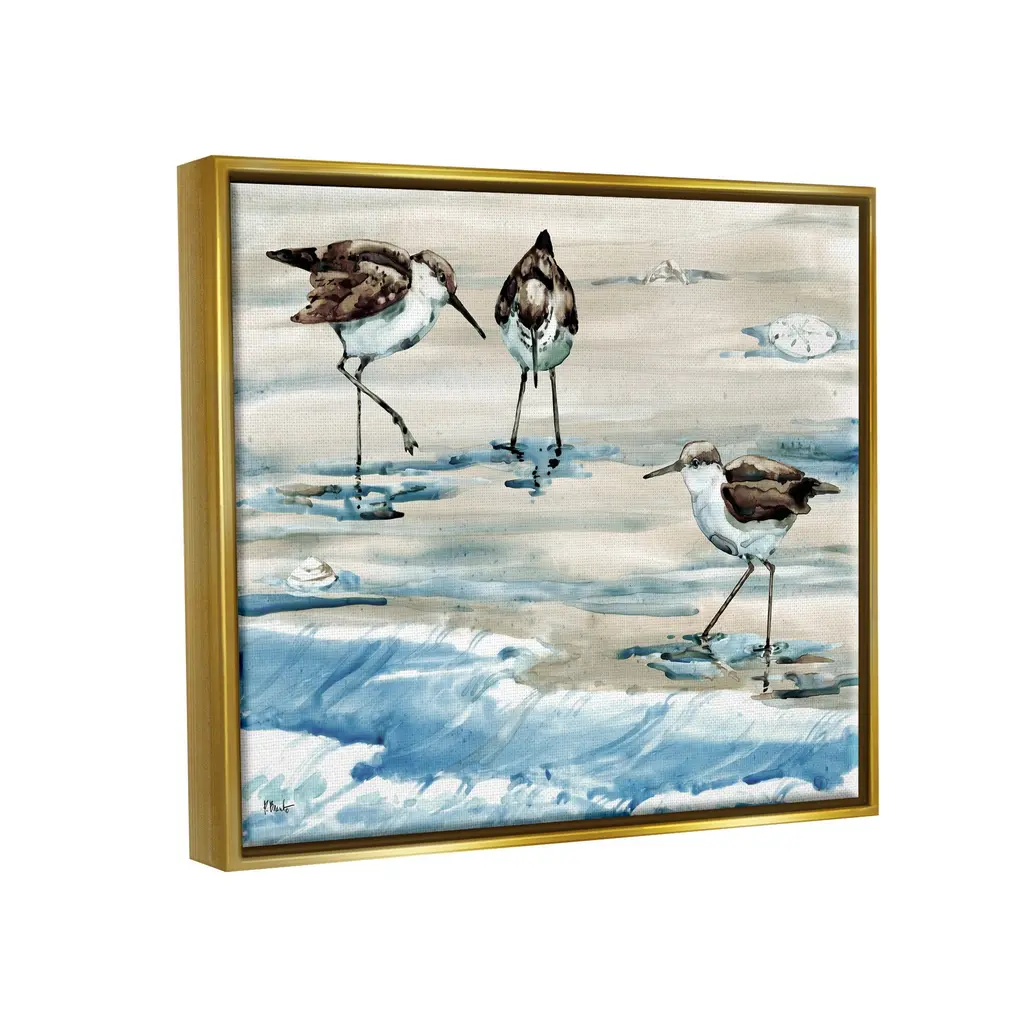 Elevate your home or office to the next level with Stupell Framed Floating Canvas Wall Art. Our premium hand stretched canvas is mounted securly into a sturdy lightweight frame. The museum style gap between wrapped canvas and box frame gives the illusion of floating artwork.Features:Floating Frame Sizes IncludeStandard: 21 x 1.7 x 17Oversized: 31 x 1.7 x 25Wall Art is Ready to Hang - No Installation or Hardware Needed. For Easy Set Up Lean or Layer Artwork on Shelf or Against Wall.Artwork Relates To: Bird, Animal, Nature, Outdoors, Flying, Waterfowl, Sandpipers, Beach, Ocean, Shore, WavesOur elevated 1.7" Thick Floating Frame is the perfect complement to our canvas style Wall Art. We use only the highest quality inks in house with industry leading printing solutions. Canvas is hand stretched over a durable wood foundation and then mounted securly into a Modern Box Frame. Made in the USA.Design by Paul Brent