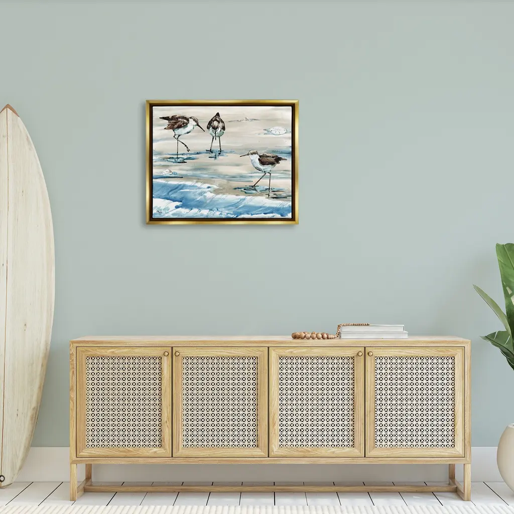 Stupell Rockhampton Sandpipers Ocean Waves Floating Framed Canvas Wall Art, Design By Paul Brent - 31 X 25 - Gold