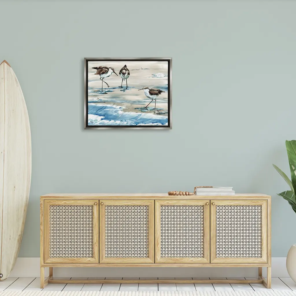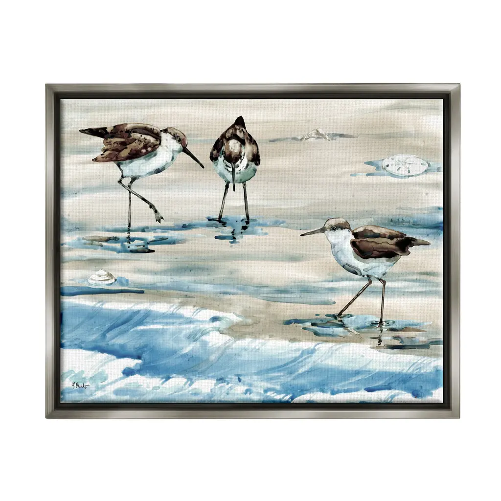 Stupell Rockhampton Sandpipers Ocean Waves Floating Framed Canvas Wall Art, Design By Paul Brent - 31 X 25 - Grey