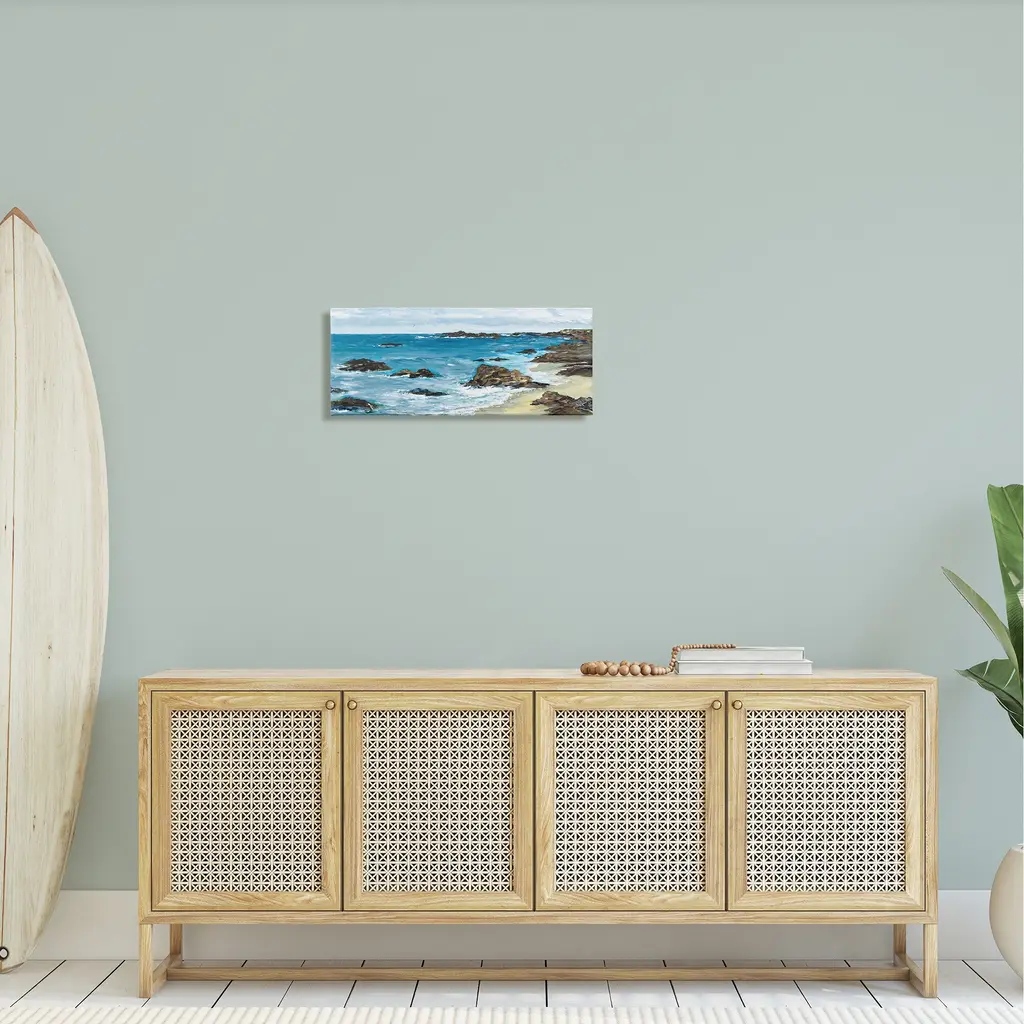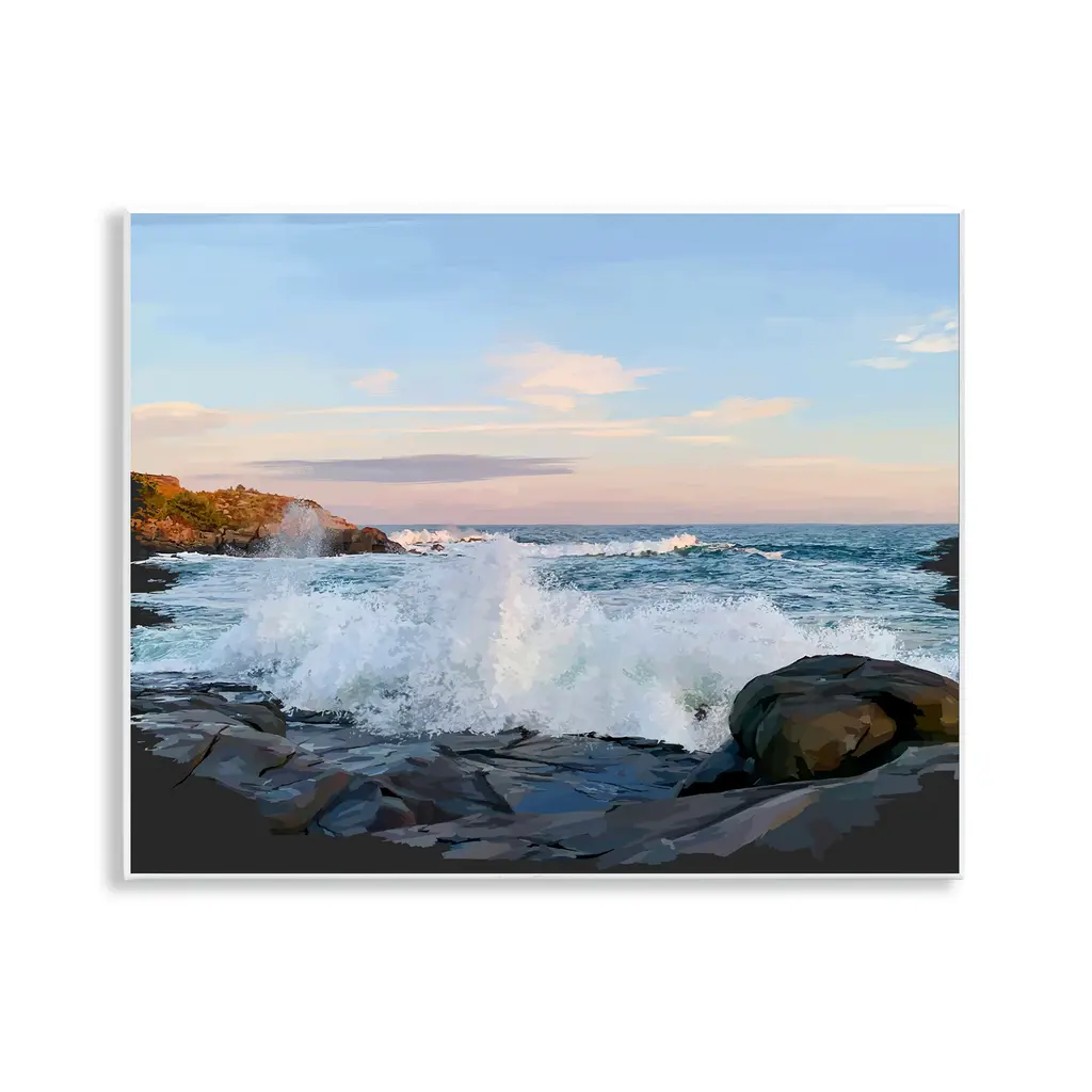 Proudly made in the USA, Our stretched canvas is created with the highest standards. We use only the highest quality inks and canvas on our in house Mimaki printers, and then hand cut and stretch each piece over a 1.5 inch thick wooden frame for hanging. The art comes ready to hang with no installation required. Not to mention, at this size, it is sure to be the focal point of any room!Features:Stretched Canvas Sizes IncludeStandard: 24 x 1.5 x 10Large: 30 x 1.5 x 13X-Large: 40 x 1.5 x 17Oversized: 48 x 1.5 x 20Wall Art is Ready to Hang - No Installation or Hardware Needed. For Easy Set Up Lean or Layer Artwork on Shelf or Against Wall.Artwork Relates To: Shoreline, Water, Sea, Ocean, Nature, Outdoors, Coast, Beach, Land, Sea Waves, Rock, Cove, Landscape, Panoramic, Scenery, SandOur stretched canvas is created with the highest standards. We use only the highest quality inks and canvas on our in house Mimaki printers, and then hand cut and stretch each piece over a 1.5 inch thick wooden frame for hanging. Made In USA.Design by Julie DeRice