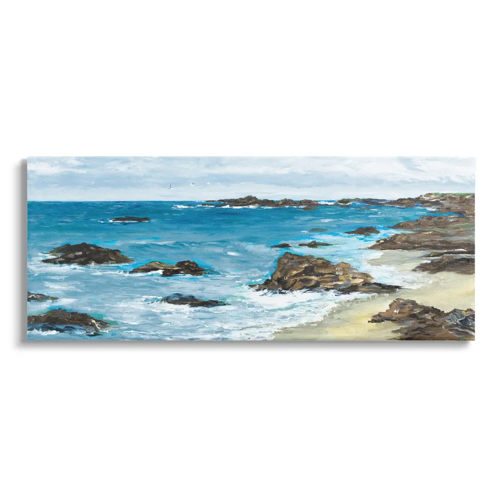 Stupell Rocky Beach Coast Painting Stretched Canvas Wall Art, Design By Julie Derice - 24 X 10