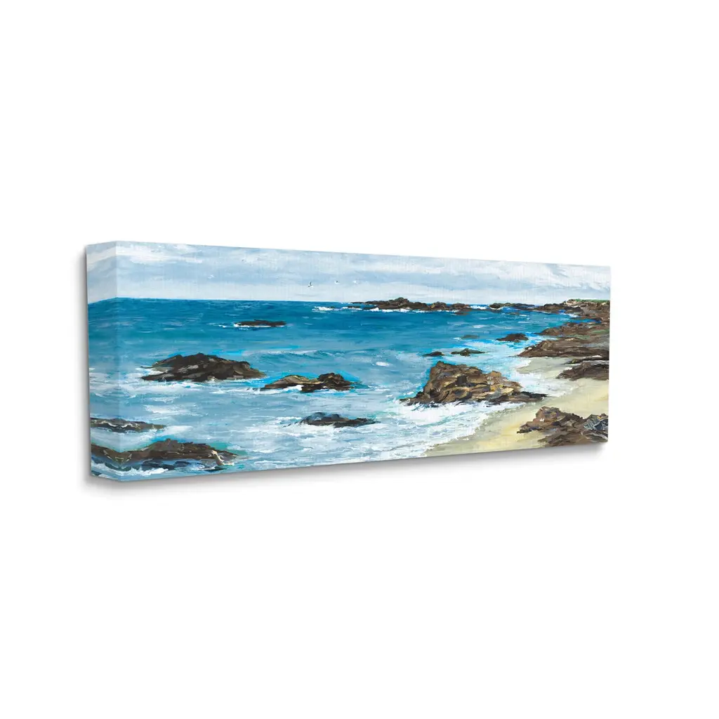 Stupell Rocky Beach Coast Painting Stretched Canvas Wall Art, Design By Julie Derice - 40 X 17