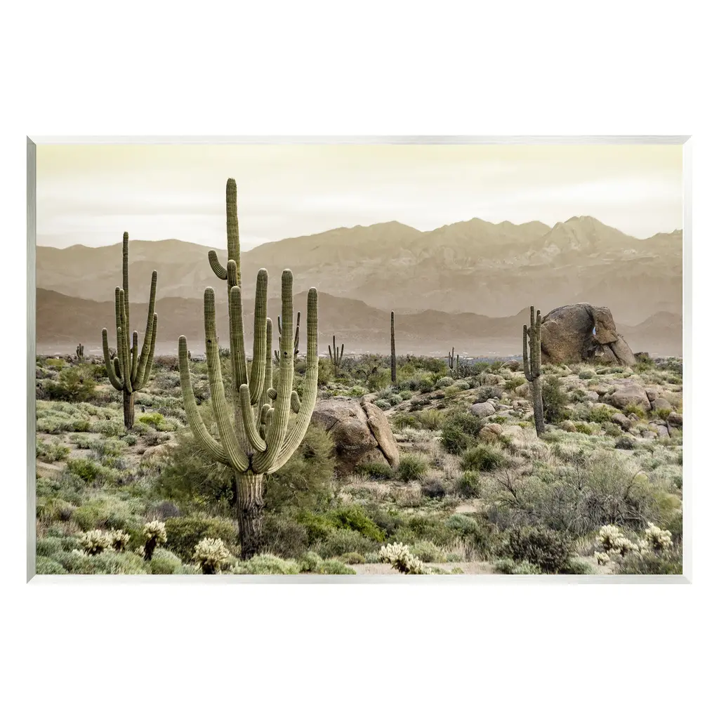 Our wall plaques start as high-quality lithograph prints mounted on durable 0.5-inch thick MDF wood. Each piece is hand finished and comes with a fresh layer of white foil on the sides to give it a crisp, clean look. Plaques arrive ready to hang without installation and come with removable plastic corners to keep them from damage in transit. Wall Art is made in the USA.Features: Dimensions: 15 x 0.5 x 10 InchesWall Plaque Sizes Include Standard: 15 x 0.5 x 10 Oversized: 19 x 0.5 x 13Wall Art is Ready to Hang with Hardware Free Hanging. No installation required. For Easy Set Up Lean or Layer Artwork on Shelf or Against Wall.All of our wall plaques start off as high quality lithograph prints that are then mounted on durable 0.5 inch thick MDF wood. Each piece is hand finished and comes with a fresh layer of foil on the sides to give it a crisp clean look. Made In USA.Artwork Relates To: Plant, Cactus, Nature, Scenery, Desert, Landscape, MountainsDesign by Kim Allen