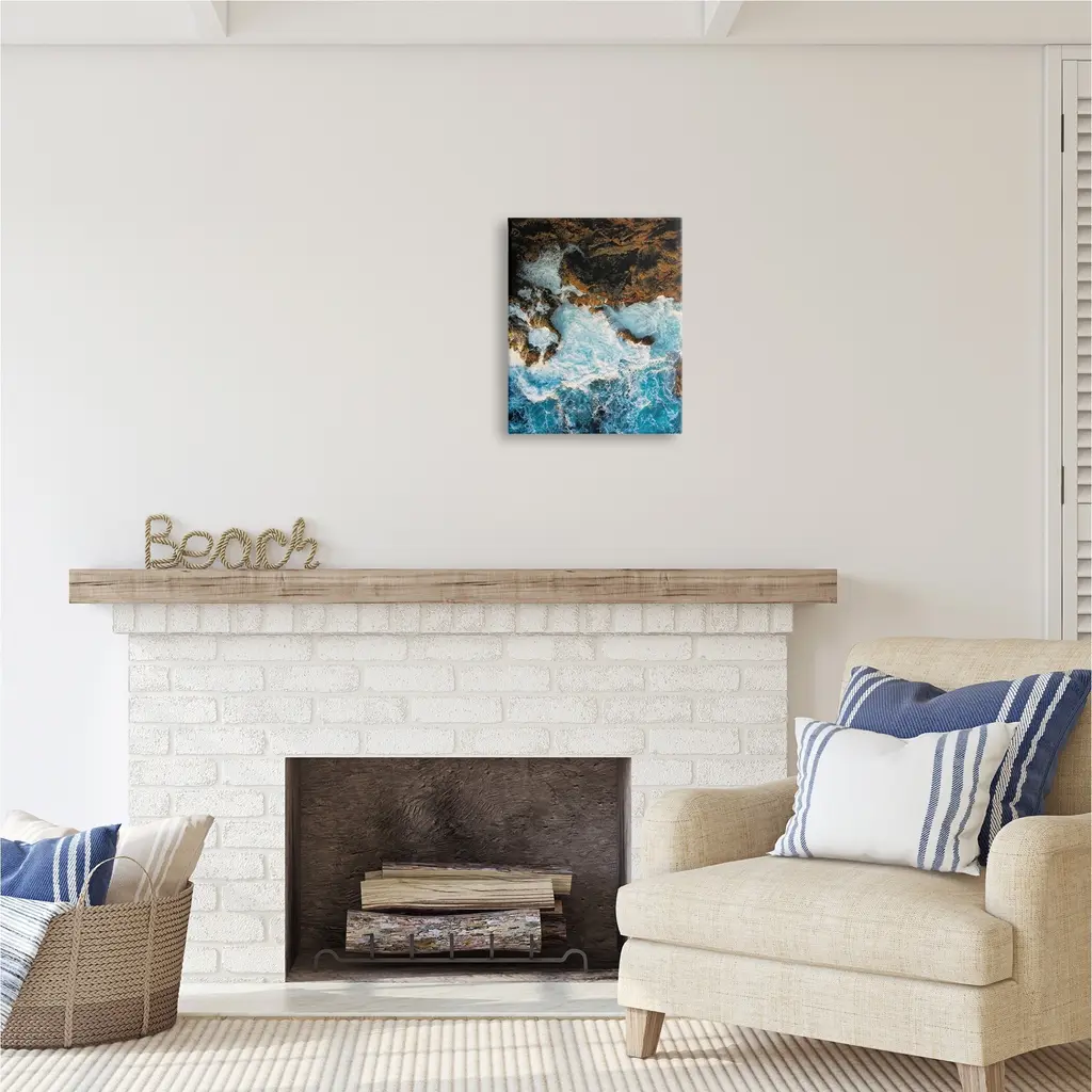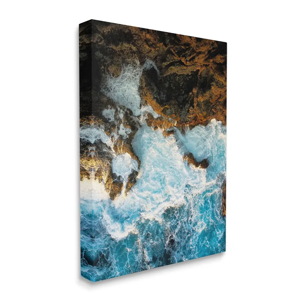 We create our stretched canvas to the highest standards. Using only the highest quality inks and canvas on Mimaki printers, we hand-cut and stretch each piece over a 1.5-inch thick wooden frame for hanging. As a result, the art comes ready to hang on the sturdy ledge with no installation required. Stupell Wall Art is made in the USA.Features: Dimensions: 16 x 1.5 x 20 InchesStretched Canvas Sizes Include Standard: 16 x 1.5 x 20 Large: 20 x 1.5 x 30 X-Large: 30 x 1.5 x 40 Oversized: 36 x 1.5 x 48Wall Art is Ready to Hang with Hardware Free Hanging. No installation required. For Easy Set Up Lean or Layer Artwork on Shelf or Against Wall.Our stretched canvas is created with the highest standards. We use only the highest quality inks and canvas on our in house Mimaki printers, and then hand cut and stretch each piece over a 1.5 inch thick wooden frame for hanging. Made In USA.Artwork Relates To: Nature, Outdoors, Sea, Water, Coast, Aerial View, Sea Waves, RockDesign by Lil' Rue
