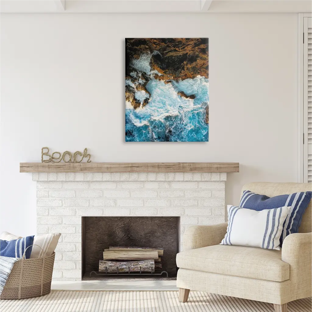 We create our stretched canvas to the highest standards. Using only the highest quality inks and canvas on Mimaki printers, we hand-cut and stretch each piece over a 1.5-inch thick wooden frame for hanging. As a result, the art comes ready to hang on the sturdy ledge with no installation required. Stupell Wall Art is made in the USA.Features: Dimensions: 16 x 1.5 x 20 InchesStretched Canvas Sizes Include Standard: 16 x 1.5 x 20 Large: 20 x 1.5 x 30 X-Large: 30 x 1.5 x 40 Oversized: 36 x 1.5 x 48Wall Art is Ready to Hang with Hardware Free Hanging. No installation required. For Easy Set Up Lean or Layer Artwork on Shelf or Against Wall.Our stretched canvas is created with the highest standards. We use only the highest quality inks and canvas on our in house Mimaki printers, and then hand cut and stretch each piece over a 1.5 inch thick wooden frame for hanging. Made In USA.Artwork Relates To: Nature, Outdoors, Sea, Water, Coast, Aerial View, Sea Waves, RockDesign by Lil' Rue