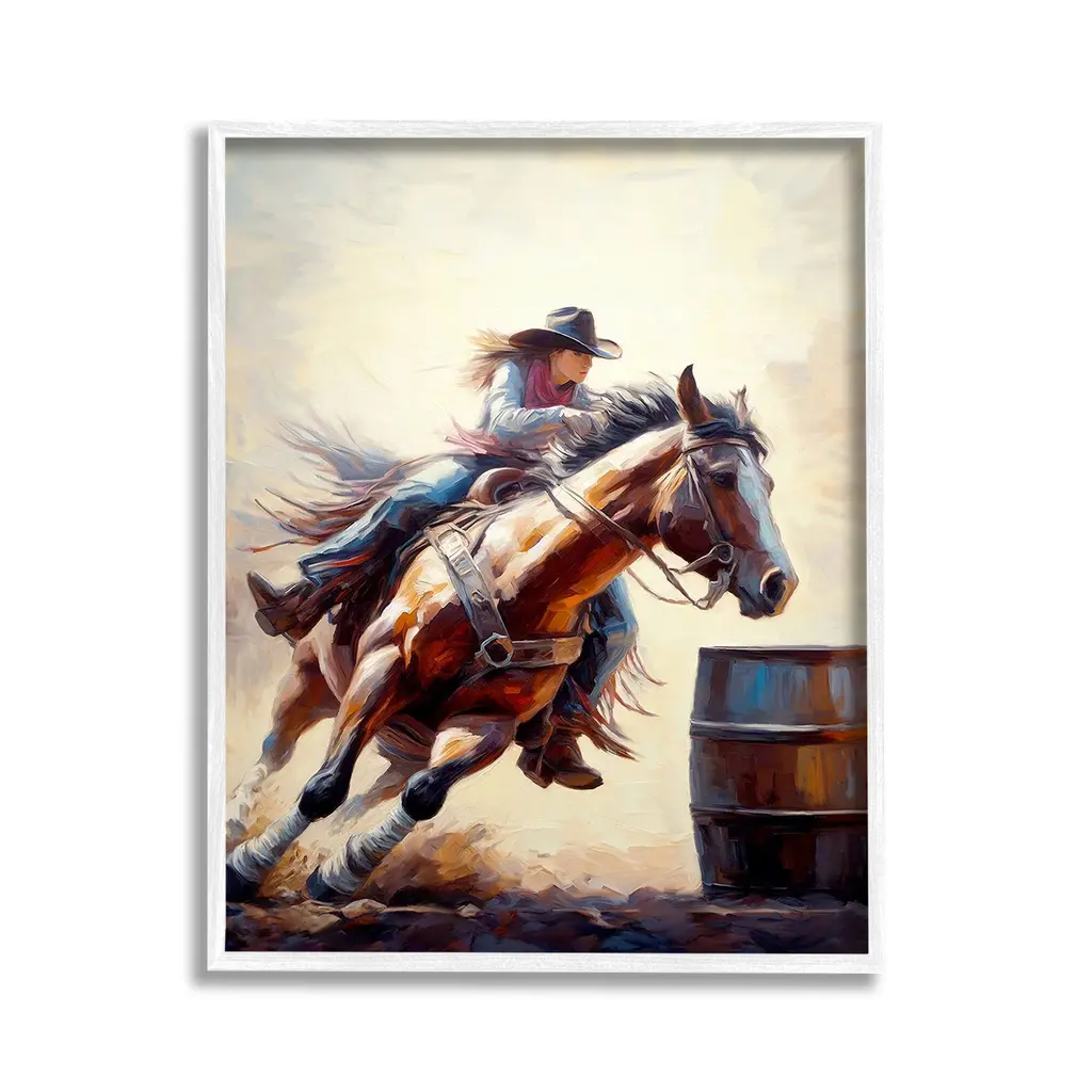 We create our stretched canvas to the highest standards. Using only the highest quality inks and canvas on Mimaki printers, we hand-cut and stretch each piece over a 1.5-inch thick wooden frame for hanging. As a result, the art comes ready to hang on the sturdy ledge with no installation required. Stupell Wall Art is made in the USA.Features: Dimensions: 20 x 1.5 x 16 InchesStretched Canvas Sizes Include Standard: 20 x 1.5 x 16 Large: 30 x 1.5 x 20 X-Large: 40 x 1.5 x 30 Oversized: 48 x 1.5 x 36Wall Art is Ready to Hang with Hardware Free Hanging. No installation required. For Easy Set Up Lean or Layer Artwork on Shelf or Against Wall.Our stretched canvas is created with the highest standards. We use only the highest quality inks and canvas on our in house Mimaki printers, and then hand cut and stretch each piece over a 1.5 inch thick wooden frame for hanging. Made In USA.Artwork Relates To: Painting, Person, Halter, Animal, Horse, Mammal, Equestrian, RodeoDesign by Julie T. Chapman