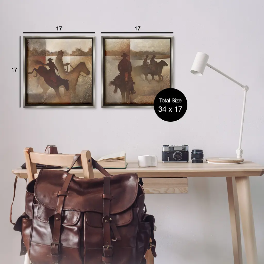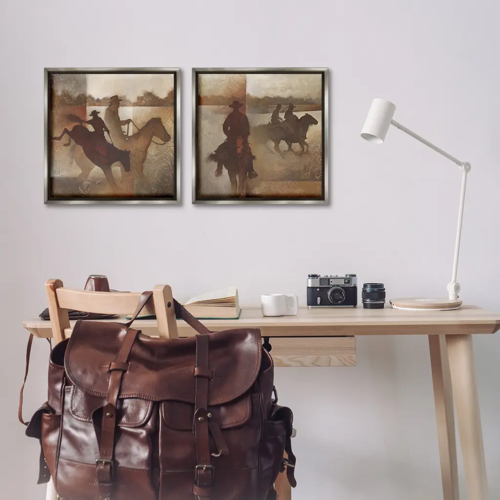 Elevate your home or office to the next level with Stupell Framed Floating Canvas Wall Art. Our premium hand-stretched canvas is mounted securely into a sturdy lightweight frame. The museum-style gap between the wrapped canvas and the box frame gives the illusion of floating artwork. Stupell Wall Art is made in the USA.Features: Dimensions: 2 Piece Set, Each Frame is 18 x 1.7 x 18Two Piece Floating Frame Canvas Products are available as 18"x18" or 25"x25" Panels. All Floating Frame Canvas Products have a 1.7" Depth.Wall Art is Ready to Hang with Hardware Free Hanging. No Installation required. For Easy Set Up Lean or Layer Artwork on Shelf or Against Wall. Artwork is Permently Fixed into the Frame.Our elevated 1.7" Thick Floating Frame is the perfect complement to our canvas style Wall Art. We use only the highest quality inks in house with industry leading printing solutions. Canvas is hand stretched over a durable wood foundation and then mounted securly into a Modern Box Frame. Made in the USA.Artwork Relates To: Rustic, Cowboy, Equestrian, Pattern, Horse, Rodeo, Southwestern, CountryDesign by White Ladder